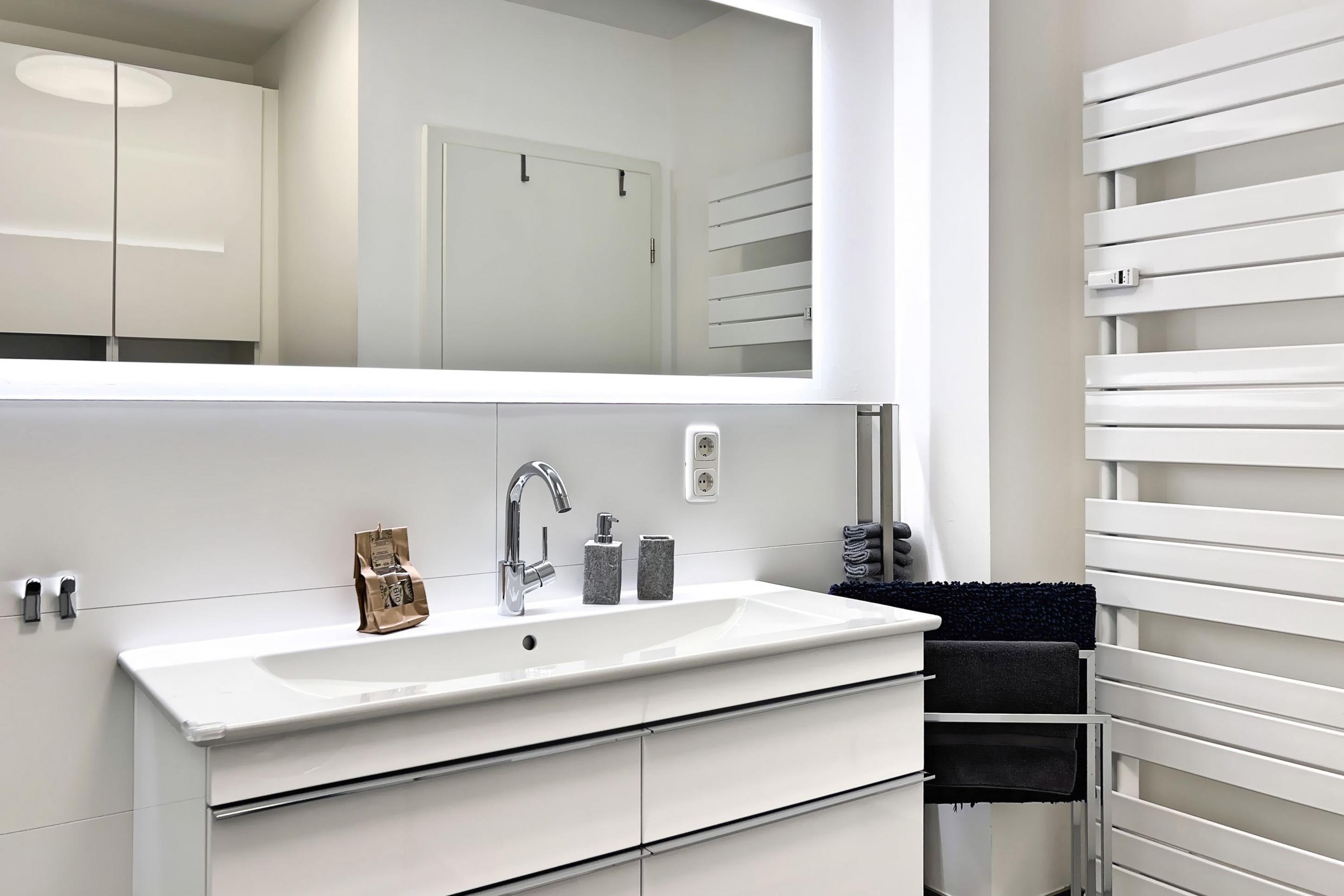 Die moderne Küche lädt zum gemeinsamen Kochen ein, das Wohnzimmer zum Entspannen, und das Boxspringbett sorgt für traumhafte Nächte.
