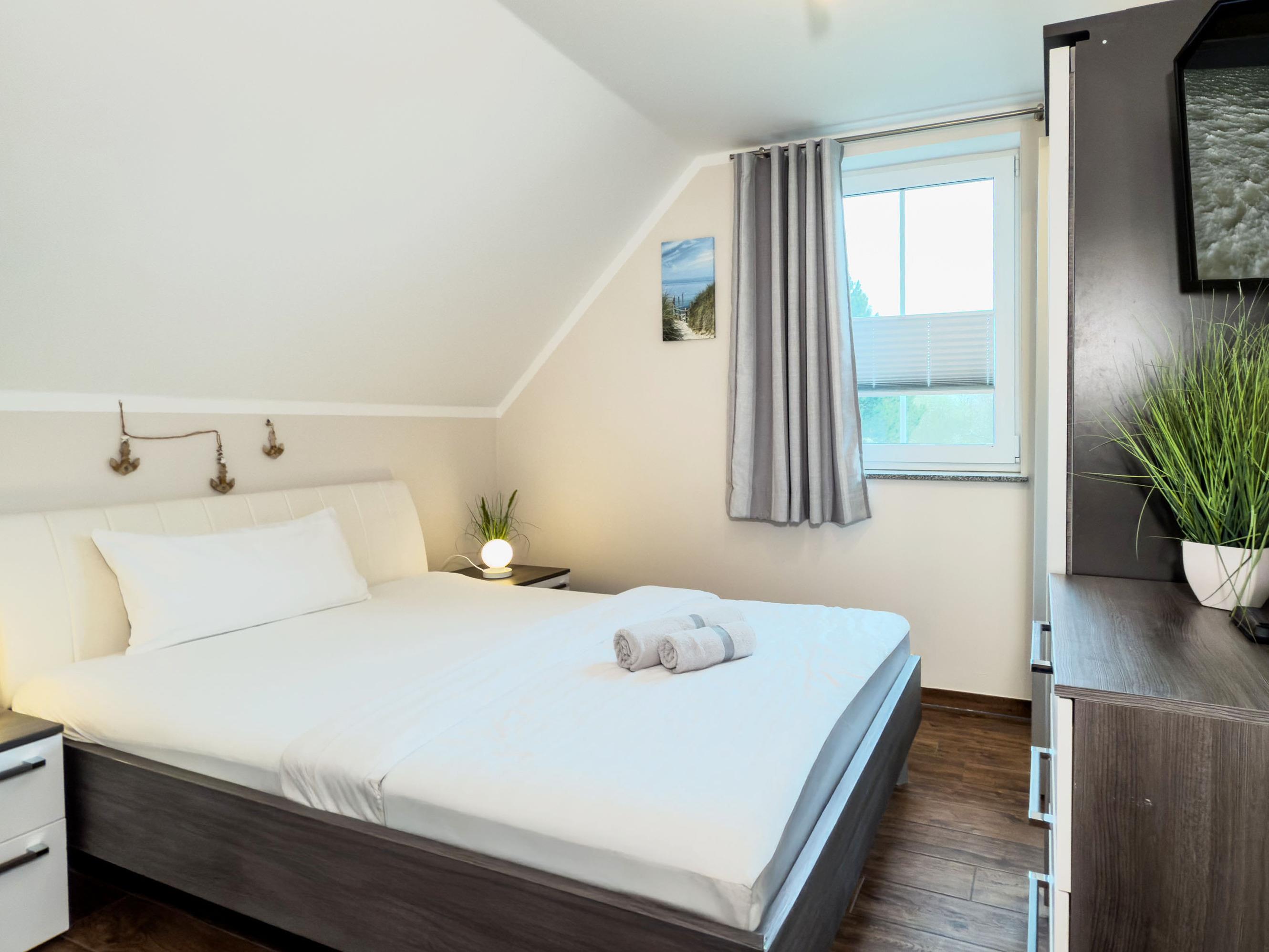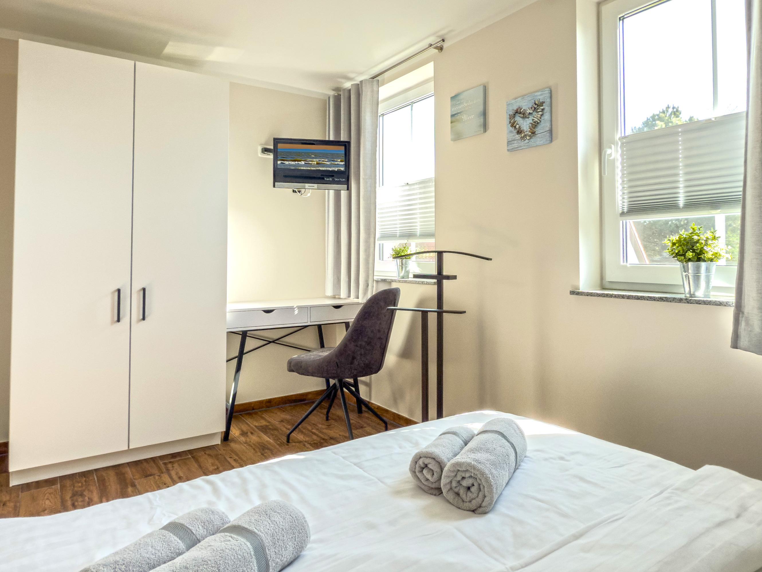Vier Schlafzimmer: zwei mit luxuriösen Boxspringbetten, Verdunklungsmöglichkeiten, Fliegengittern und Fernsehern; ein weiteres Schlafzimmer mit Einzelbetten; zusätzliches Dachgeschosszimmer