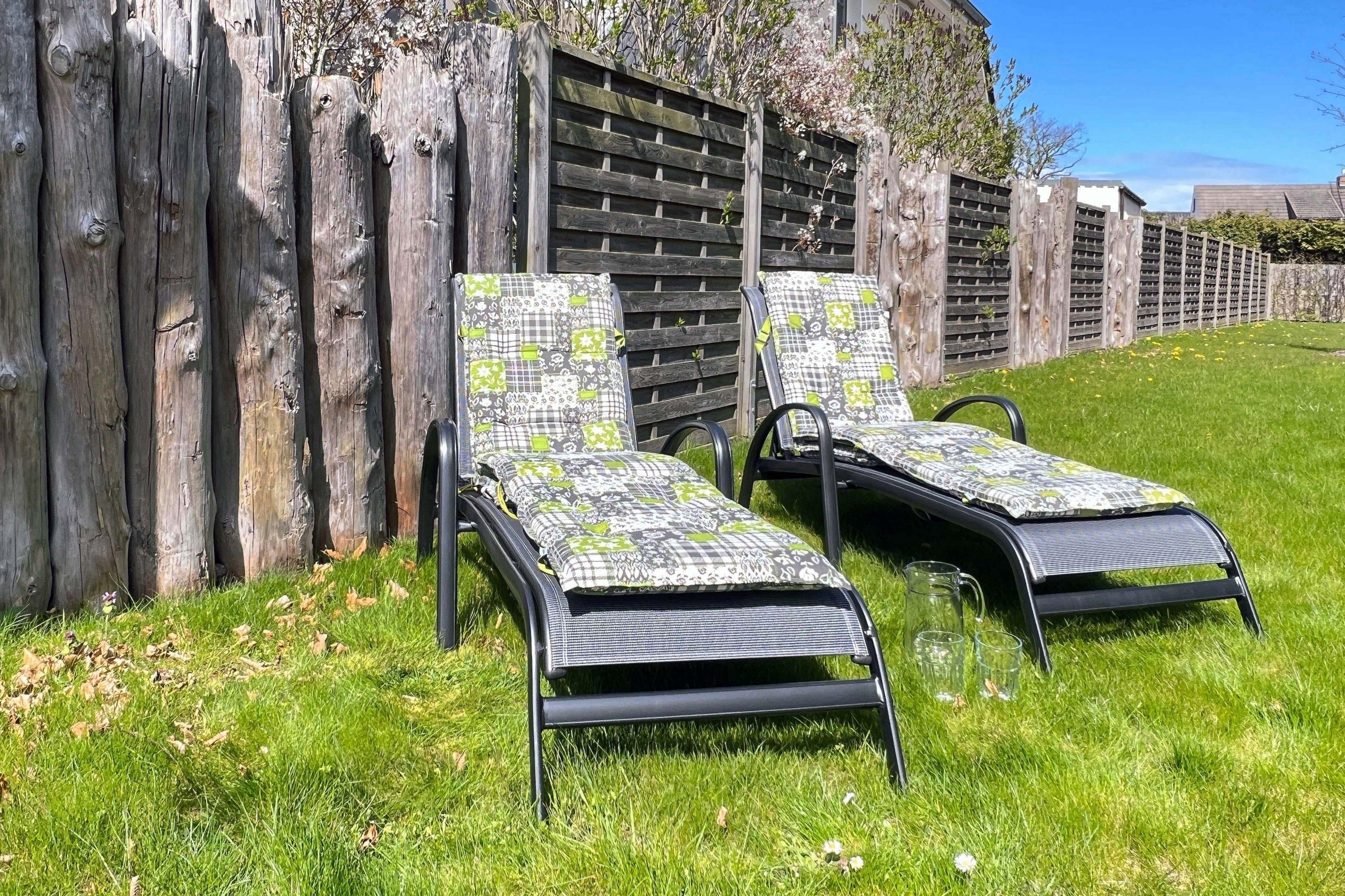 Genießen Sie die frische Ostseeluft auf der eigenen Terrasse mit bequemen Gartenmöbeln. Der direkte Zugang zum gepflegten Garten bietet zusätzlichen Raum zum Entspannen und Wohlfühlen.