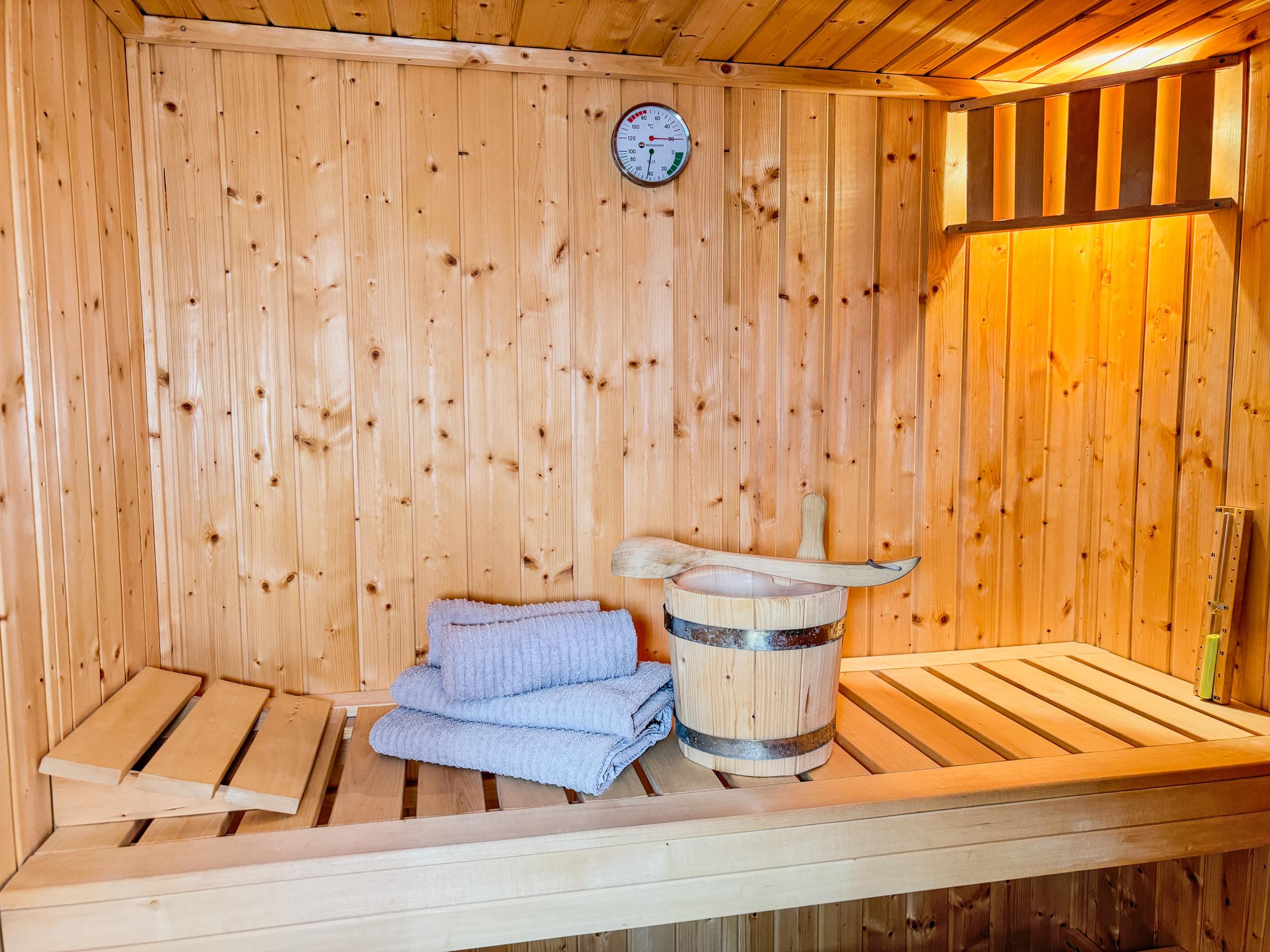 Nach einem erlebnisreichen Tag an der frischen Ostseeluft lädt die private Sauna zum Entspannen ein und bietet die perfekte Möglichkeit, müde Muskeln zu lockern und zur Ruhe zu kommen. Starten Sie den Tag auf der sonnigen Terrasse mit einem gemütlichen Frühstück oder genießen Sie abends die letzten Sonnenstrahlen im Garten. Die hochwertigen Gartenmöbel bieten zusätzlichen Komfort für entspannte Stunden im Freien.