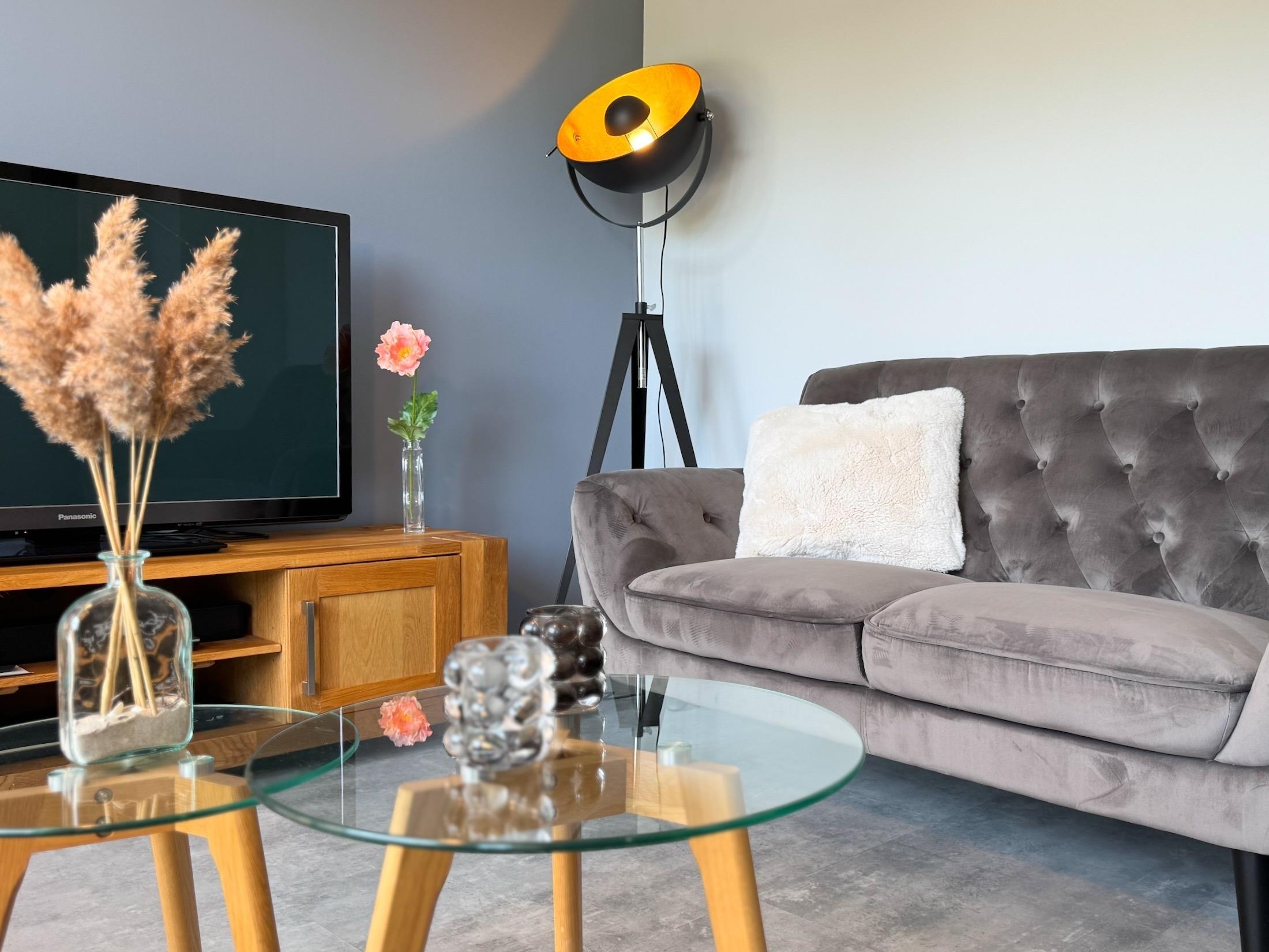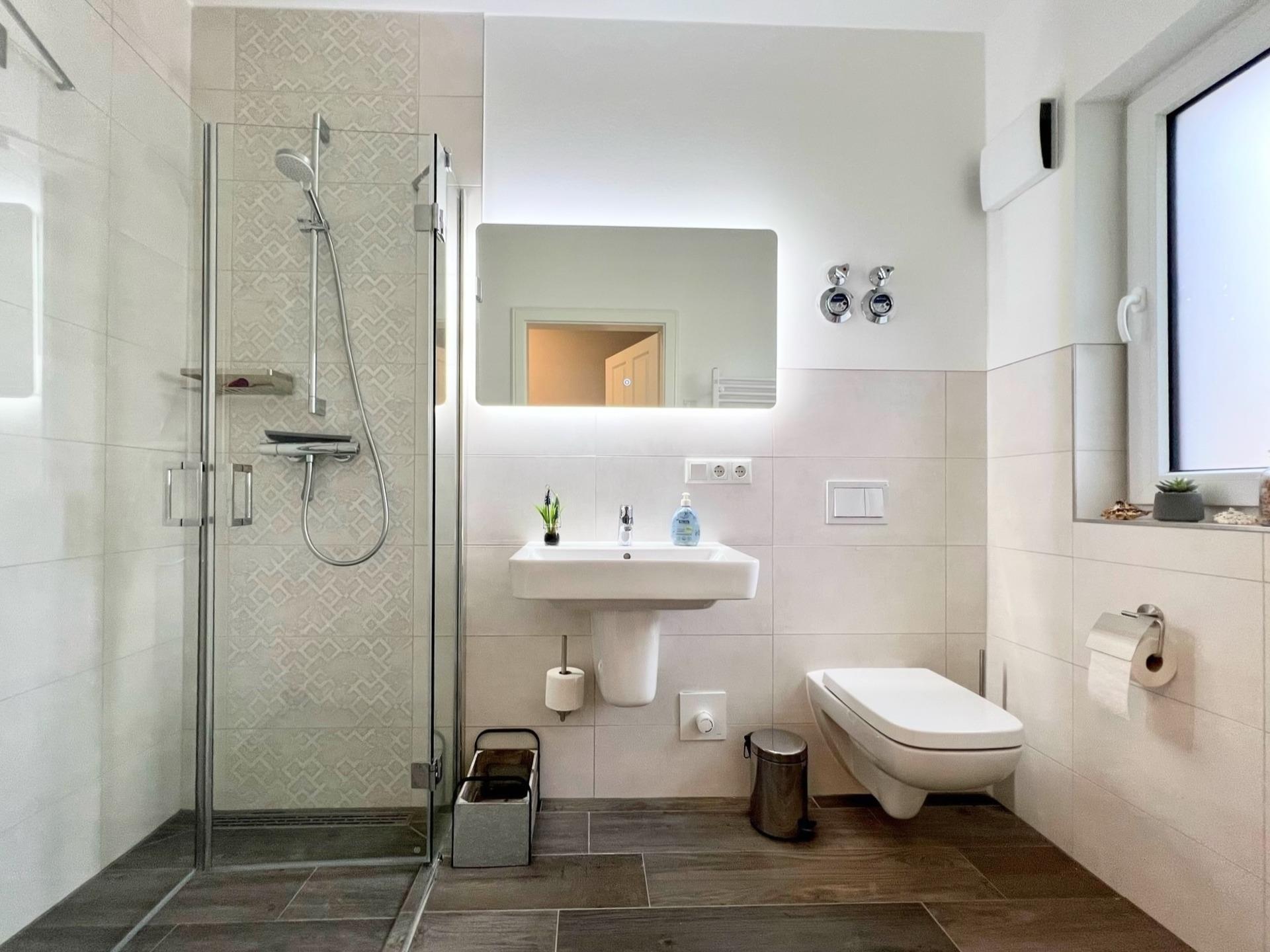 Die hochwertige Küche mit Tresen ist komplett ausgestattet. Das Schlafzimmer mit Boxspringbett und das moderne Bad mit ebenerdiger Dusche sowie Fußbodenheizung sorgen für erholsamen Komfort. Privater Parkplatz und abschließbarer Fahrradschuppen mit E-Bike-Ladestation vorhanden. Superschnelles WLAN.