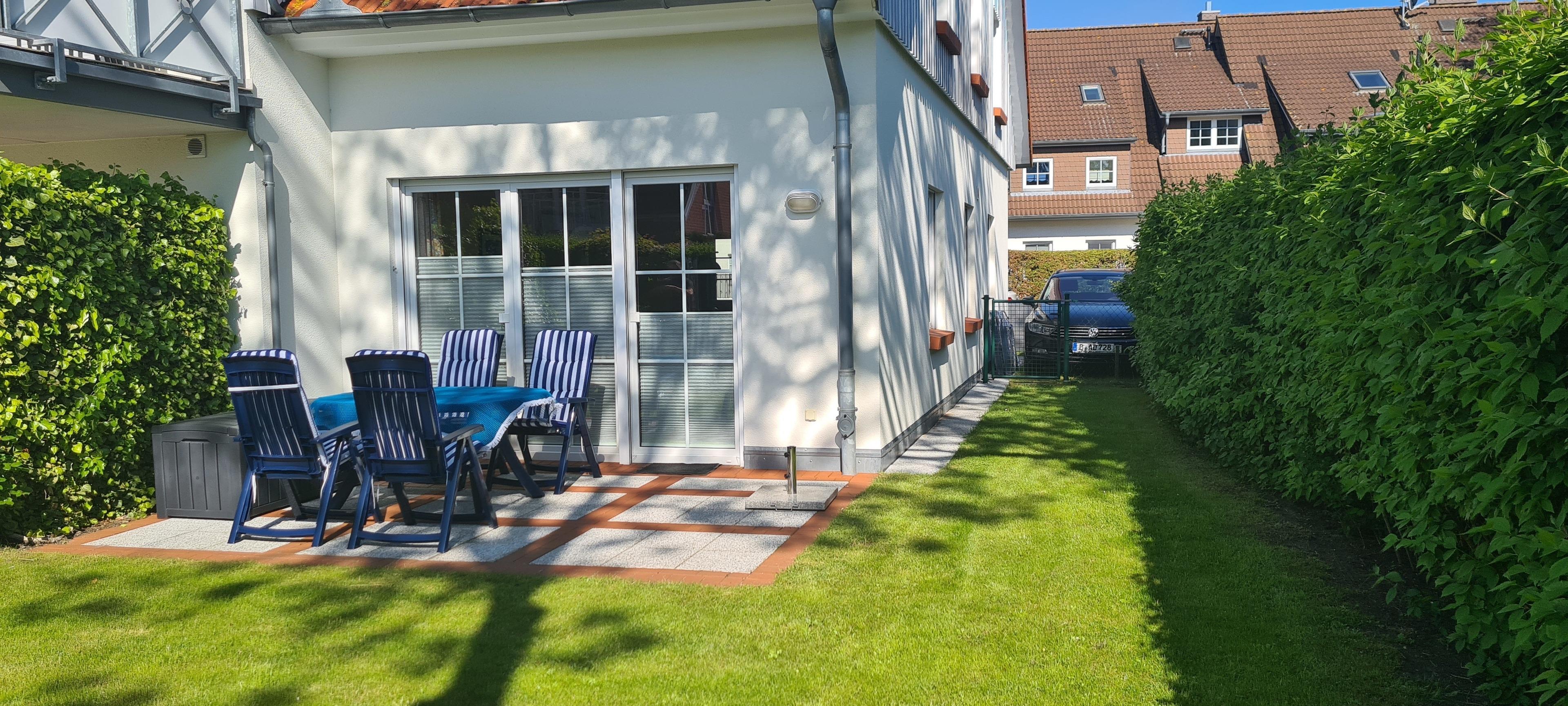 Die anspruchs- und geschmackvoll eingerichtete Nichtraucherwohnung mit WLAN bietet auf 61m² Platz für 4 Personen. Die hochwertige, vollausgestattete offene Küche lässt keine Wünsche offen. Im Bad mit Dusche finden Sie eine Waschmaschine und einen Fön. Auf der sonnigen SW Terrasse befinden sich Gartenmöbel, Sonnenliegen und ein Sonnenschirm. Die gemeinschaftliche Wiese kann ebenso mitbenutzt werden. Ein PKW-Stellplatz und ein Fahrradraum stehen Ihnen zur Verfügung. Die Entfernung zum Strand beträgt etwa 300 Meter und zum Zentrum sind es ca. 10 Minuten zu Fuß. Haustiere sind nicht erlaubt.