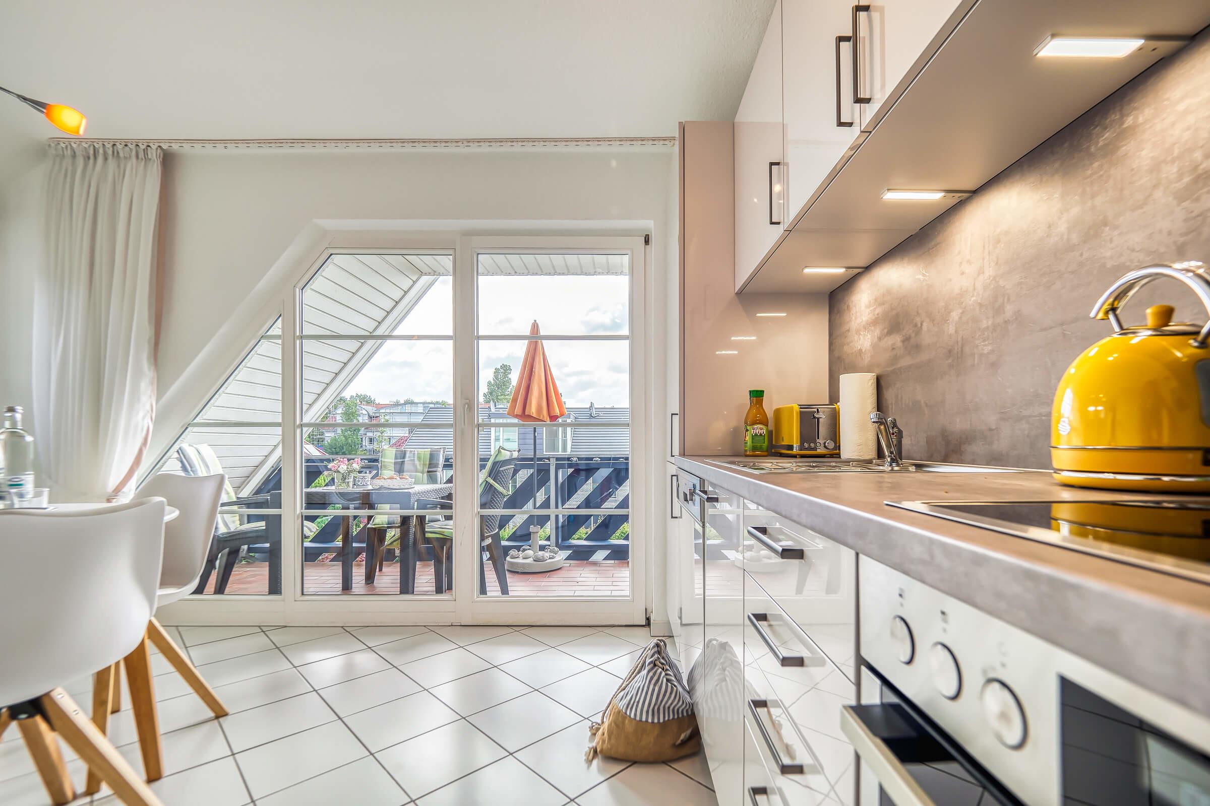 Ein zusätzliches kleines Zimmer mit Bett (0,90 m x 1,9 m) steht Ihnen zur Verfügung. Das Apartment befindet sich im zweiten Obergeschoss. Ausgewählte Fenster sind mit Fliegengitter ausgestattet. Der gemütliche Süd-Ost-Balkon ist über die Küche erreichbar. Die Ferienwohnung verfügt über einen eigenen WLAN-Anschluss.