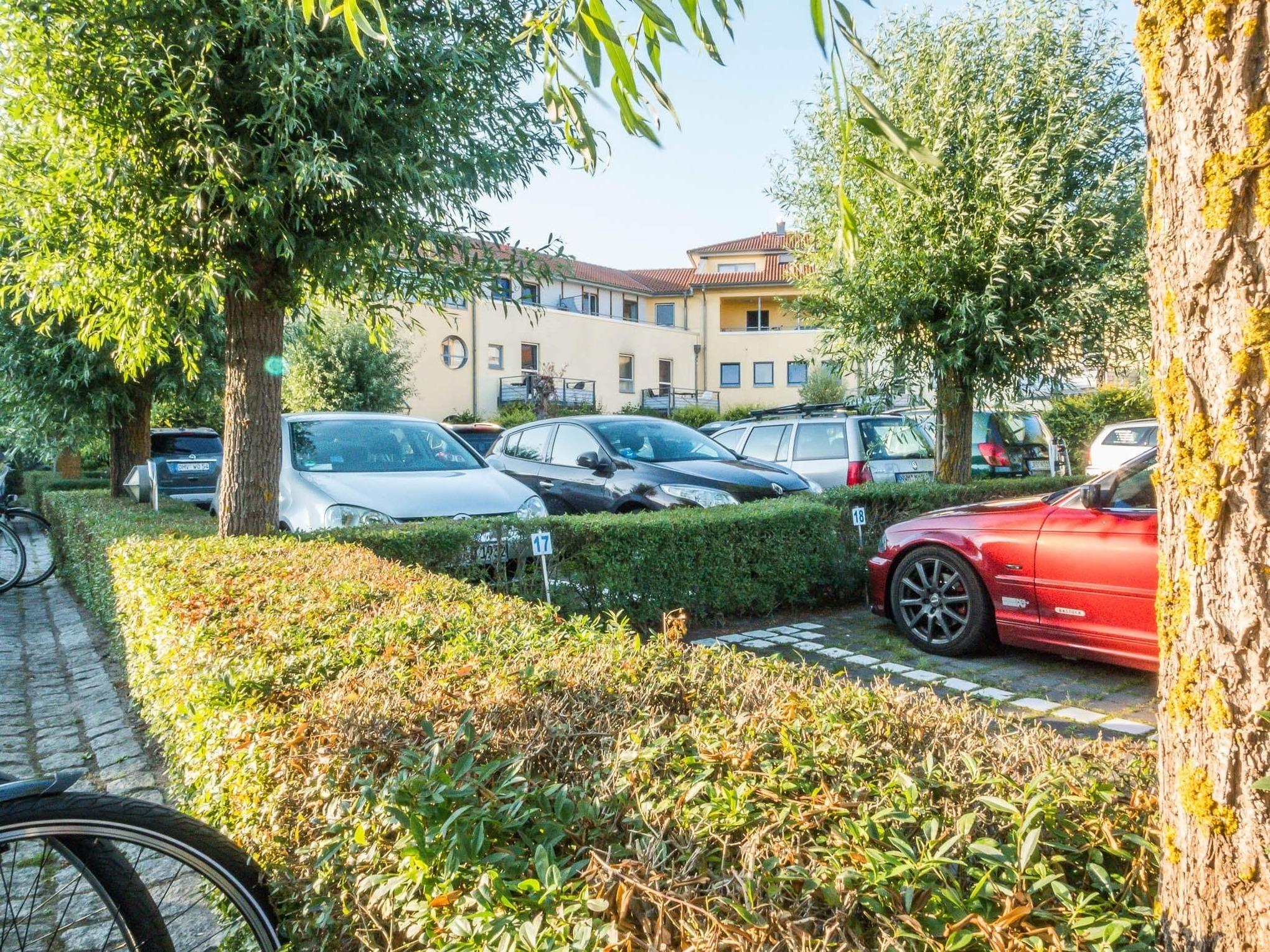 Das Auto kann auf dem eigenen Parkplatz im Innenhof abgestellt werden und die Fahrräder finden Platz im Keller.