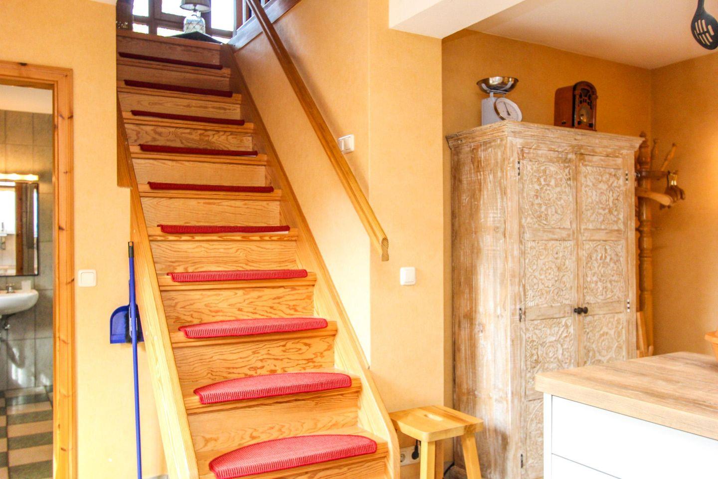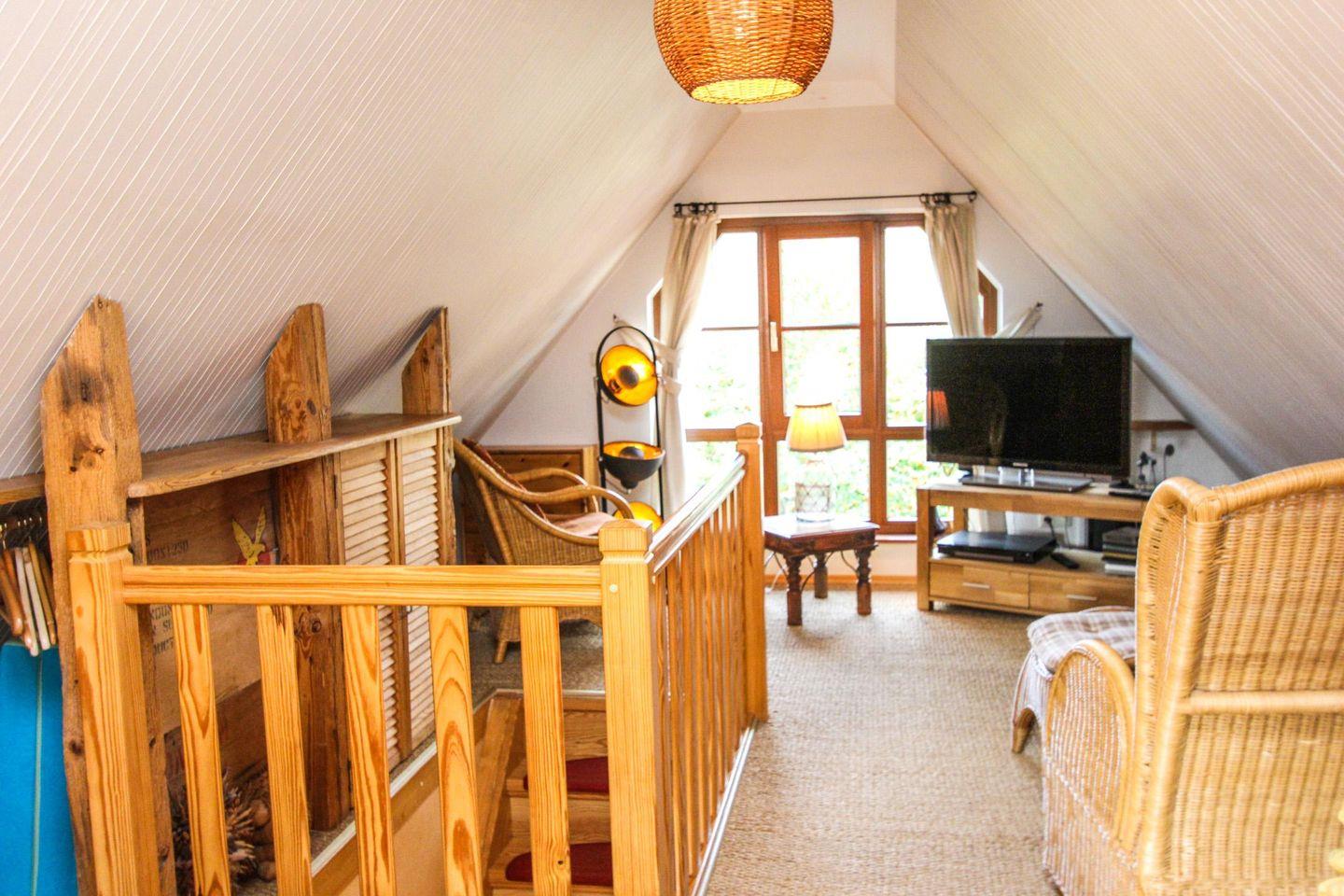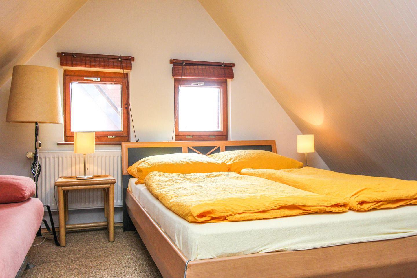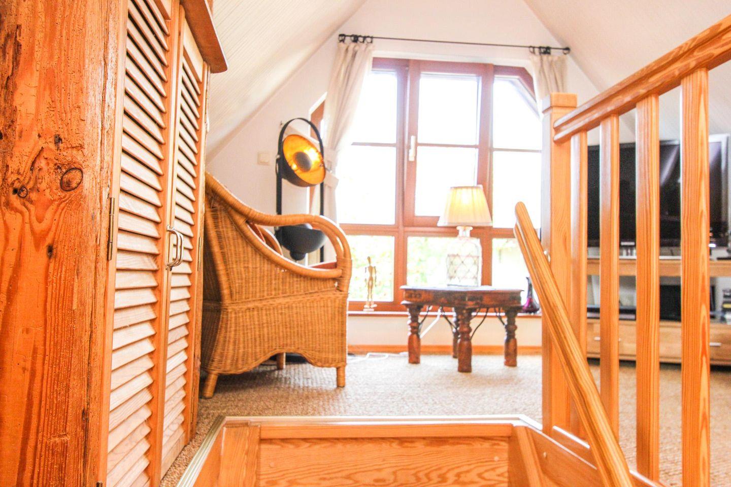 Über eine Treppe betritt man den geschmackvoll eingerichteten Wohn- und Schlafbereich im Spitzboden.