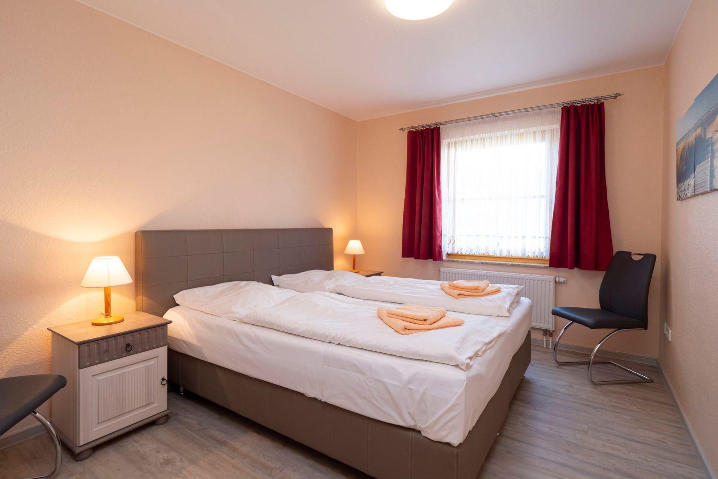 Dank Fliegengittern an den Fenstern bleibt die Wohnung auch im Sommer angenehm ruhig. Ein abschließbarer Fahrradschuppen ist ebenso vorhanden wie kostenfreier Zugang zum hauseigenen Schwimmbad des Ferienparks. Die Sauna kann auf Wunsch genutzt werden.