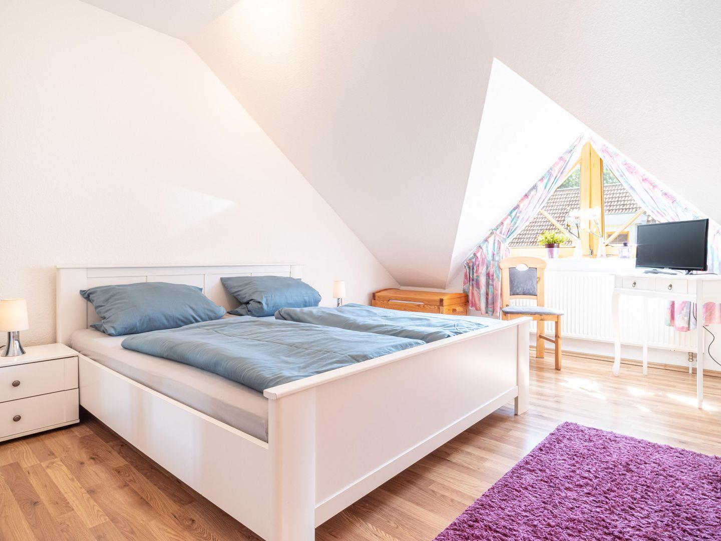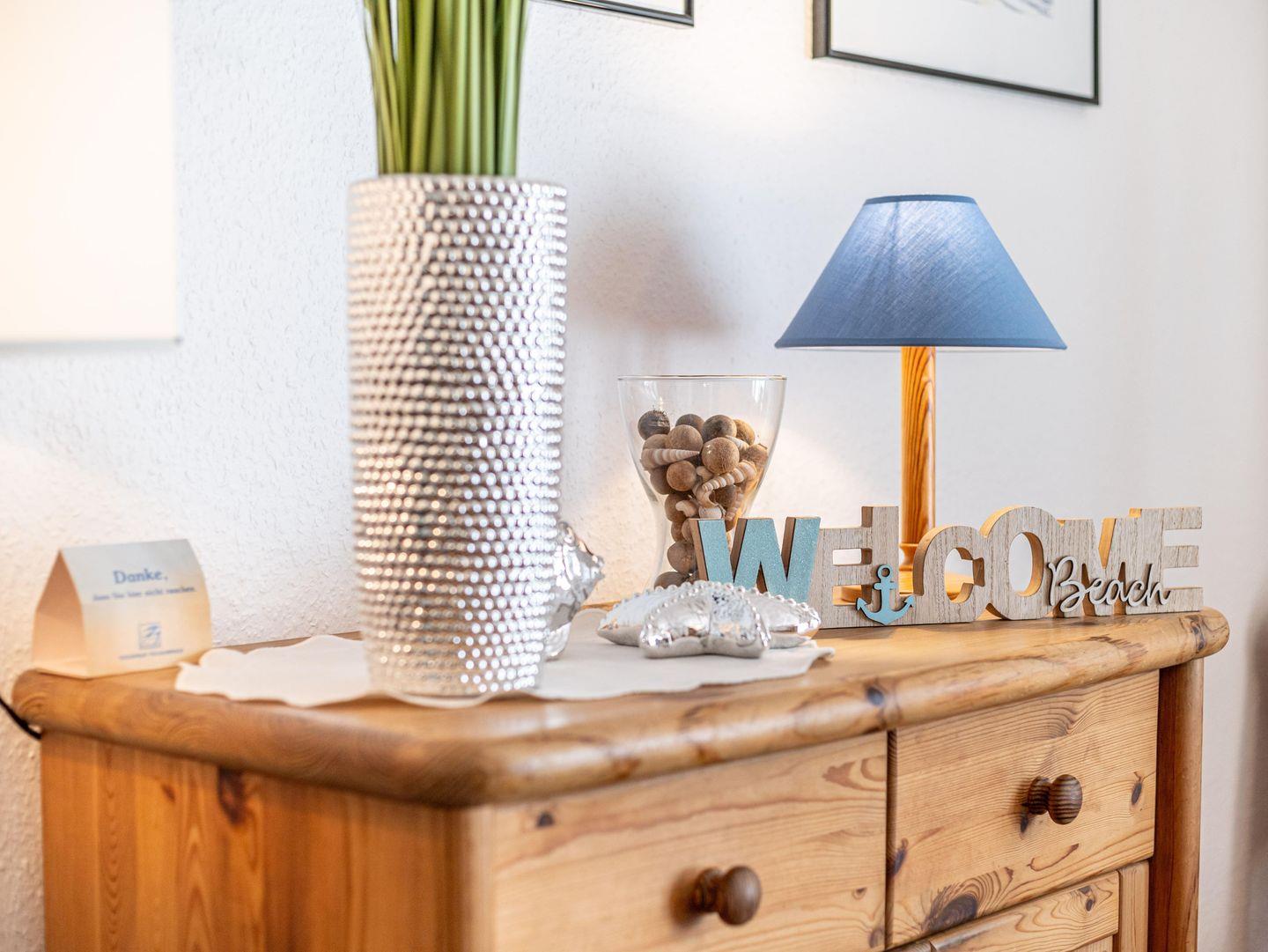 Im Erdgeschoss befindet sich der freundlich eingerichtete Wohnbereich mit Sitzgruppe, TV, DVD-Player und einem Esstisch für vier Personen. Vom Wohnzimmer aus gelangen Sie direkt auf die möblierte Terrasse – ein herrlicher Platz für Ihr Frühstück an der frischen Ostseeluft oder zum Entspannen nach einem Strandtag.