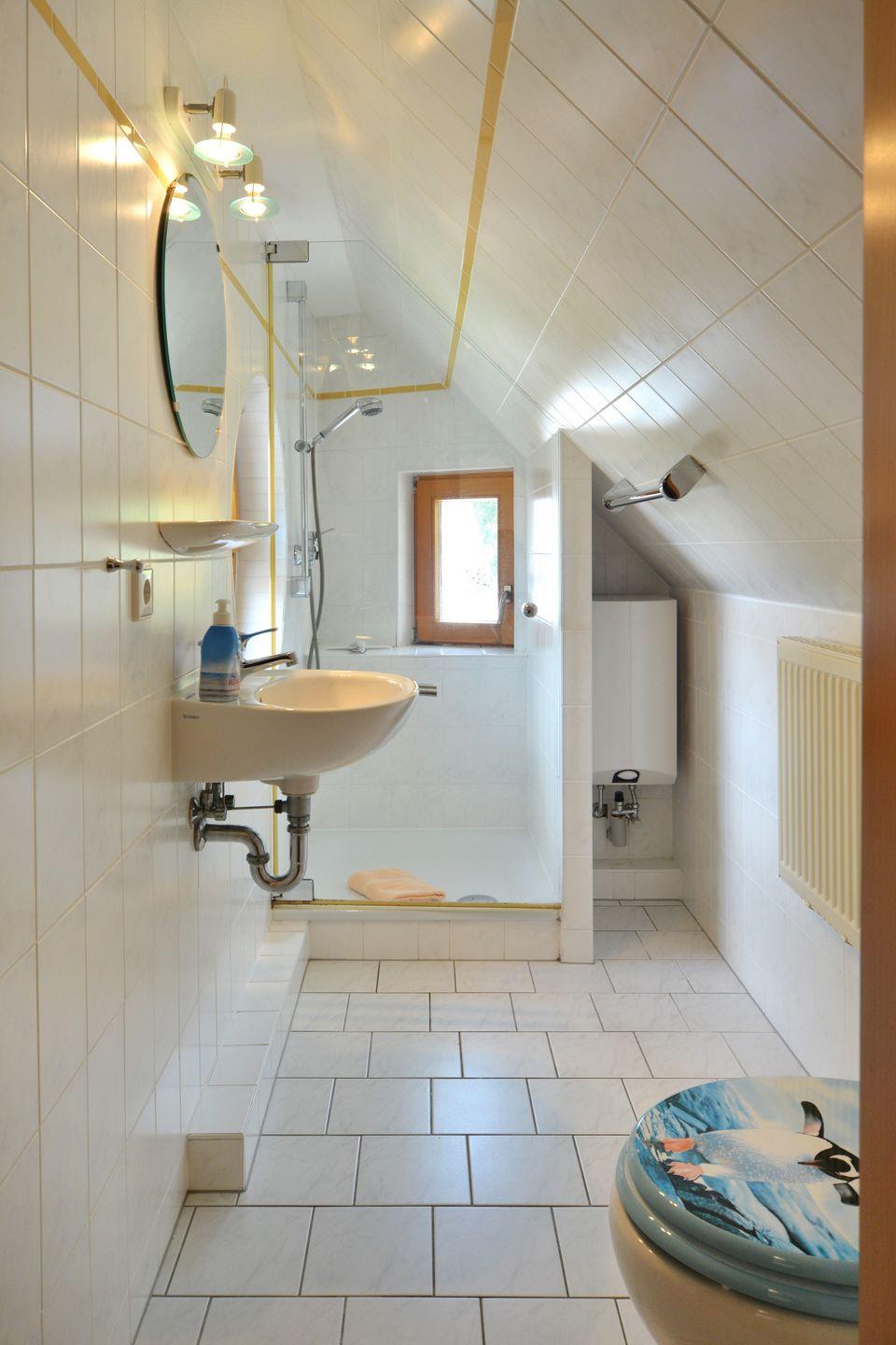 Im 1. Obergeschoss gelegen, erwartet Sie ein großzügiger Wohnbereich mit gemütlicher Sitzgruppe, TV, DVD-Player und einem Esstisch für sechs Personen. Die angrenzende Küche ist voll ausgestattet – mit Ceranfeld, Backofen, Mikrowelle, Kühlschrank mit Gefrierfach, Geschirrspüler und Dunstabzugshaube – perfekt für Selbstversorger. Auf dieser Etage finden Sie außerdem zwei Schlafzimmer: eines mit Doppelbett (zwei Matratzen je 90×200?cm), das andere mit zwei Einzelbetten. Das Badezimmer verfügt über Dusche, WC und eine Waschmaschine. Die Fenster in den Schlafzimmern sind mit praktischen Fliegengittern versehen.