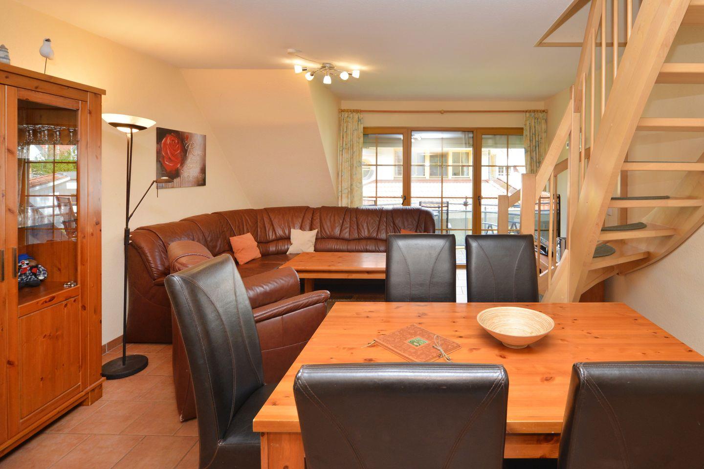 Die komfortable Ferienwohnung „Freesenblick“ im Ferienpark Freesenbruch in Zingst bietet mit ca. 77?m² über zwei Etagen reichlich Platz für Familien oder befreundete Paare – ideal für einen entspannten Strandurlaub mit Hund.