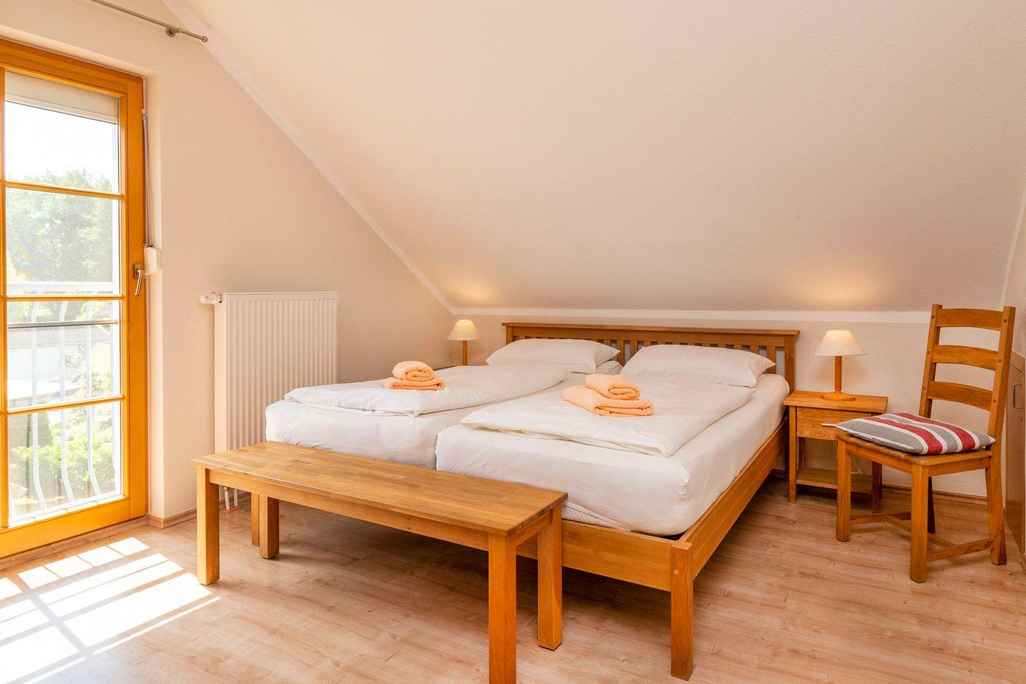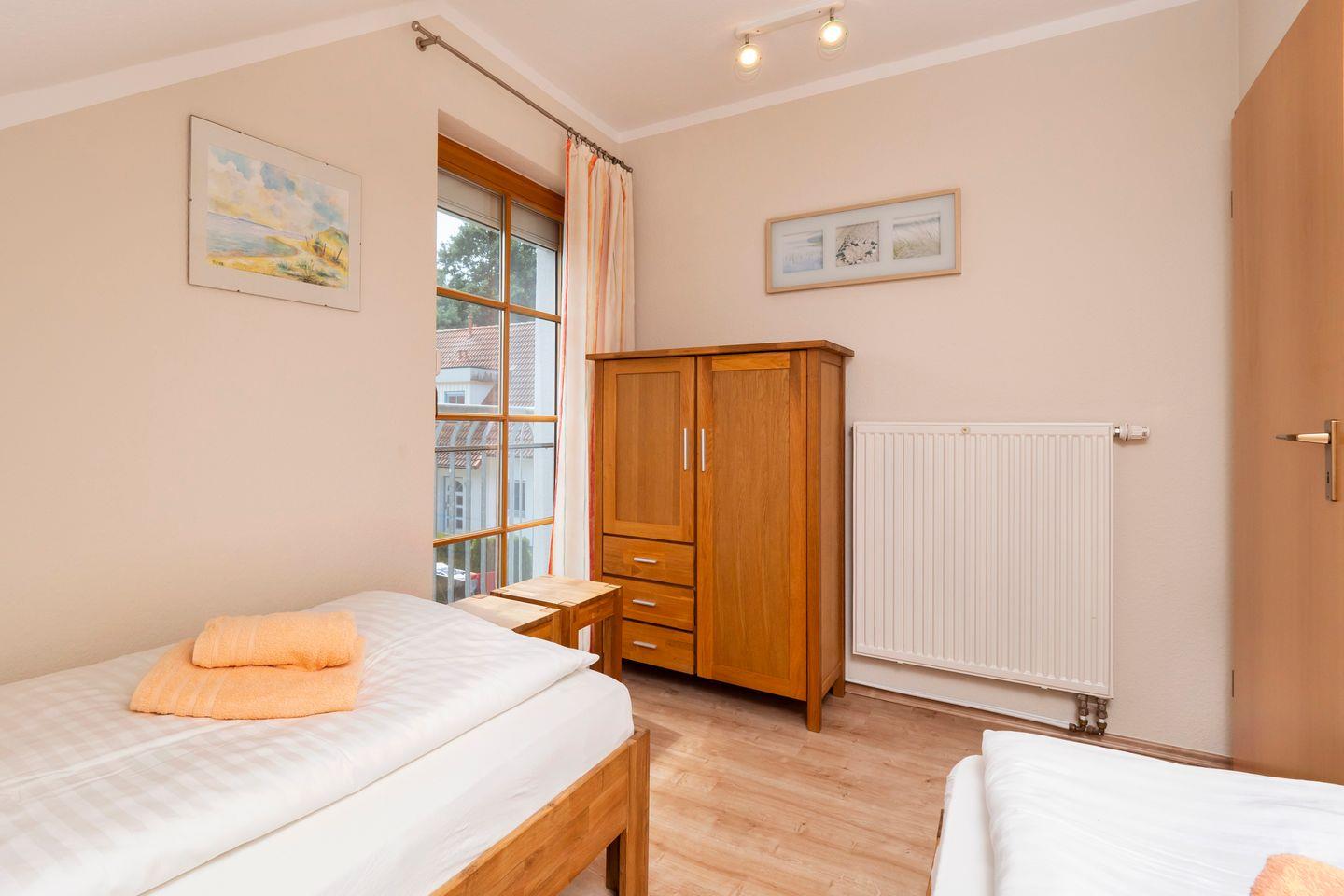 In einem Schlafzimmer befindet sich ein Doppelbett (2 Matratzen je 90 x 200) das zweite Schlafzimmer ist mit 2 Einzelbetten ausgestattet.
