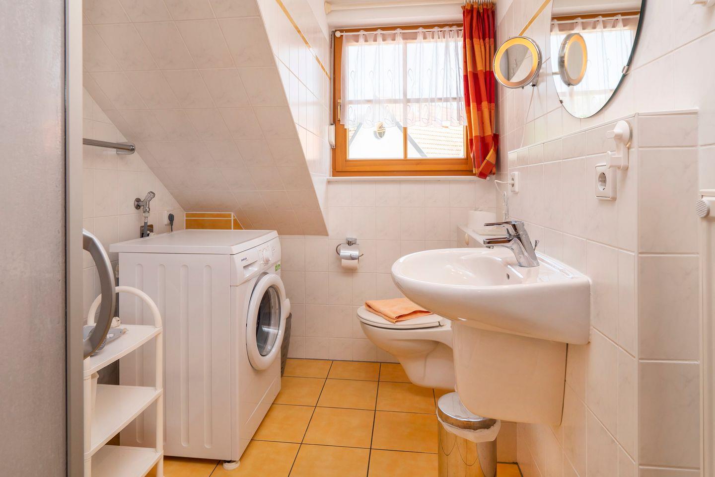 In der zweiten Ebene gibt es 2 Schlafzimmer und ein Badezimmer mit Dusche, Waschbecken, WC und Waschmaschine.