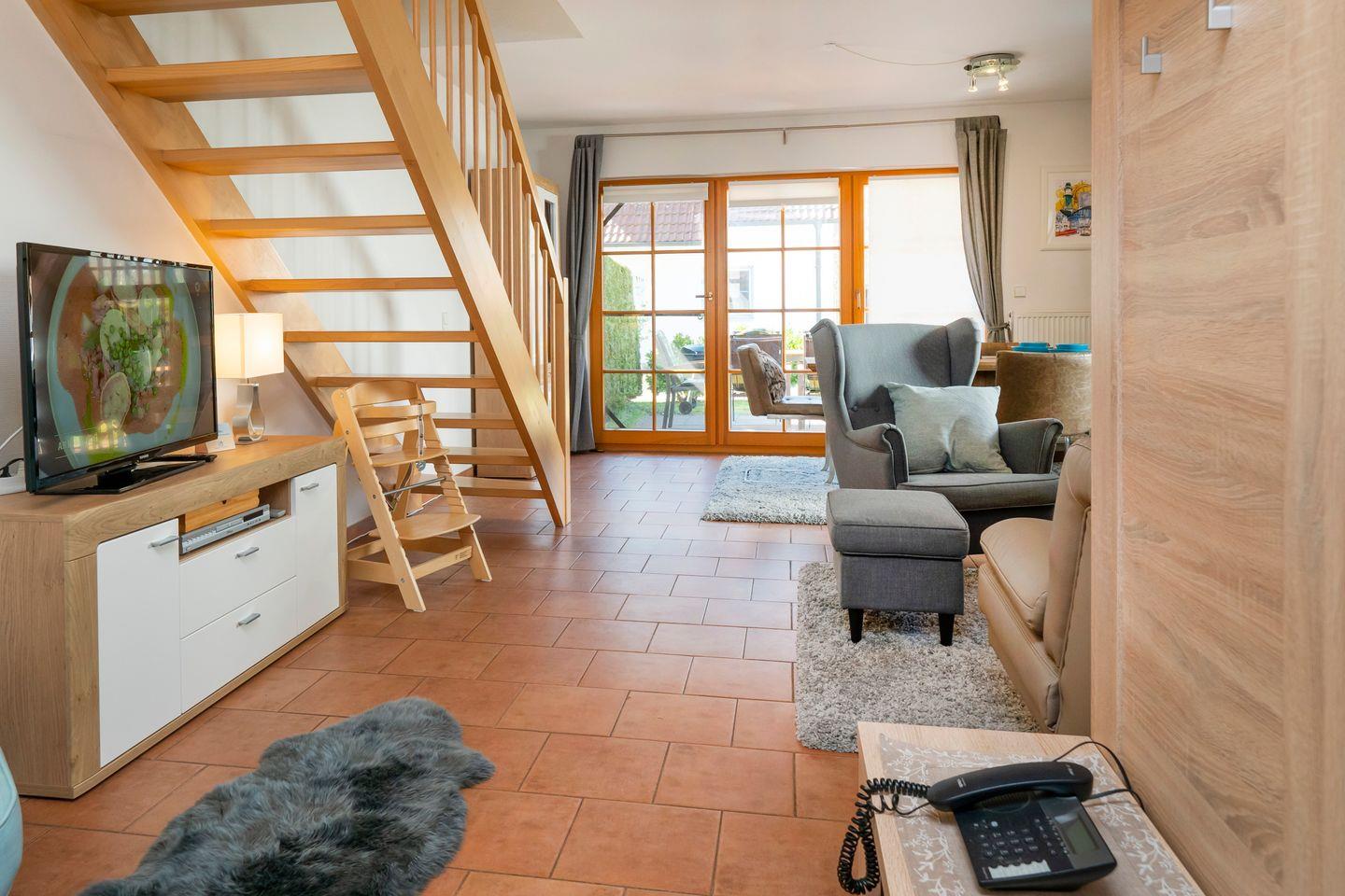 Vom Wohnzimmer gelangen Sie auf die möblierte Terrasse.