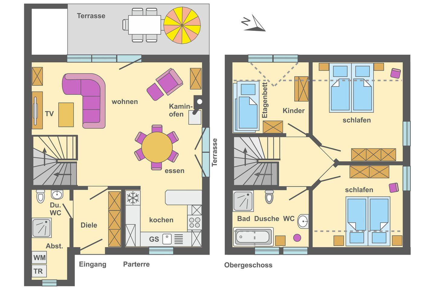 Das 96 m² große Doppelhaus ersteckt sich über 2 Ebenen