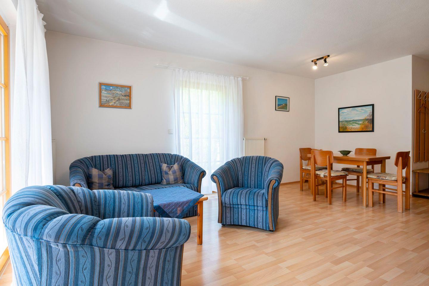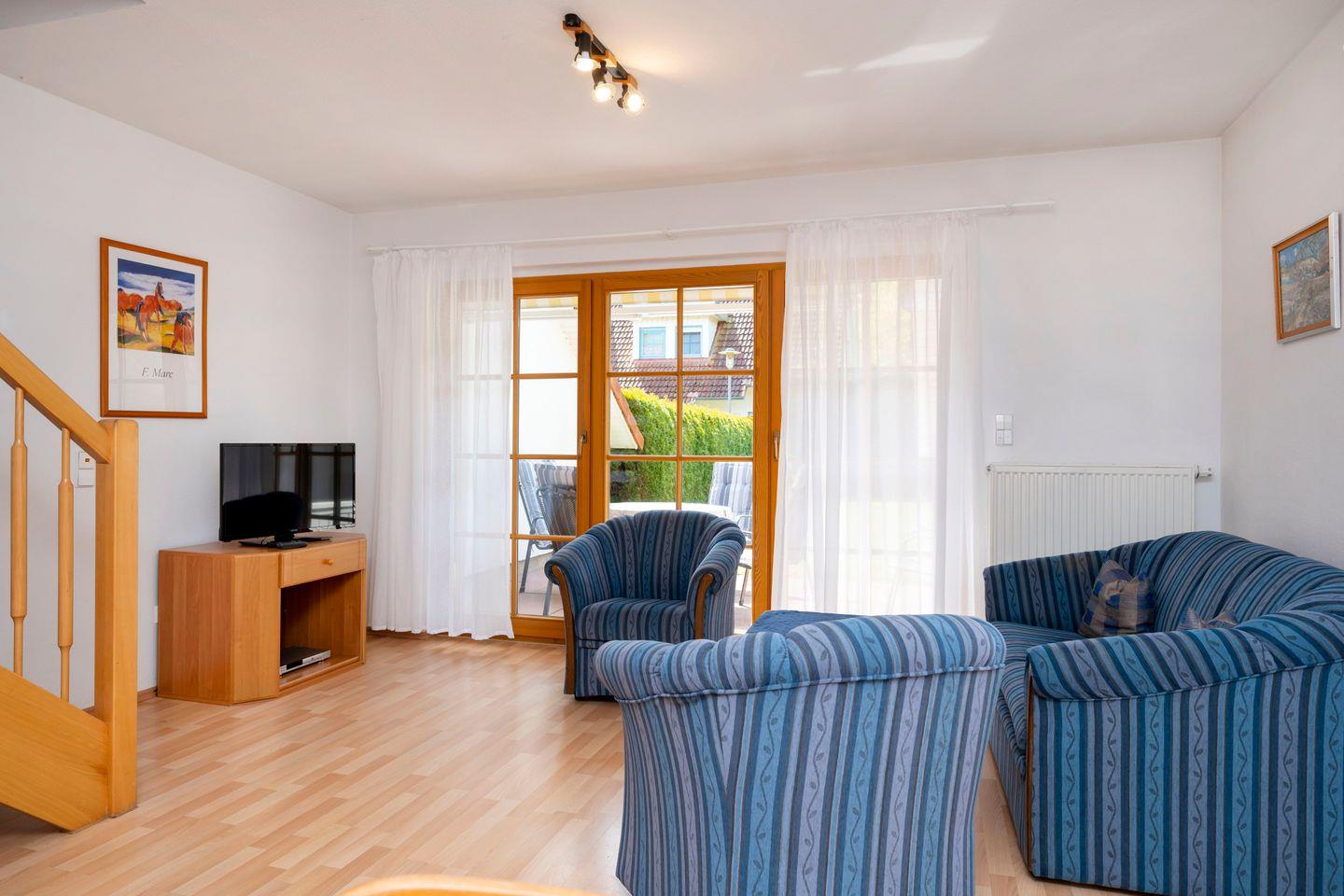 Vom Wohnzimmer gelangen Sie auf die möblierte Terrasse.