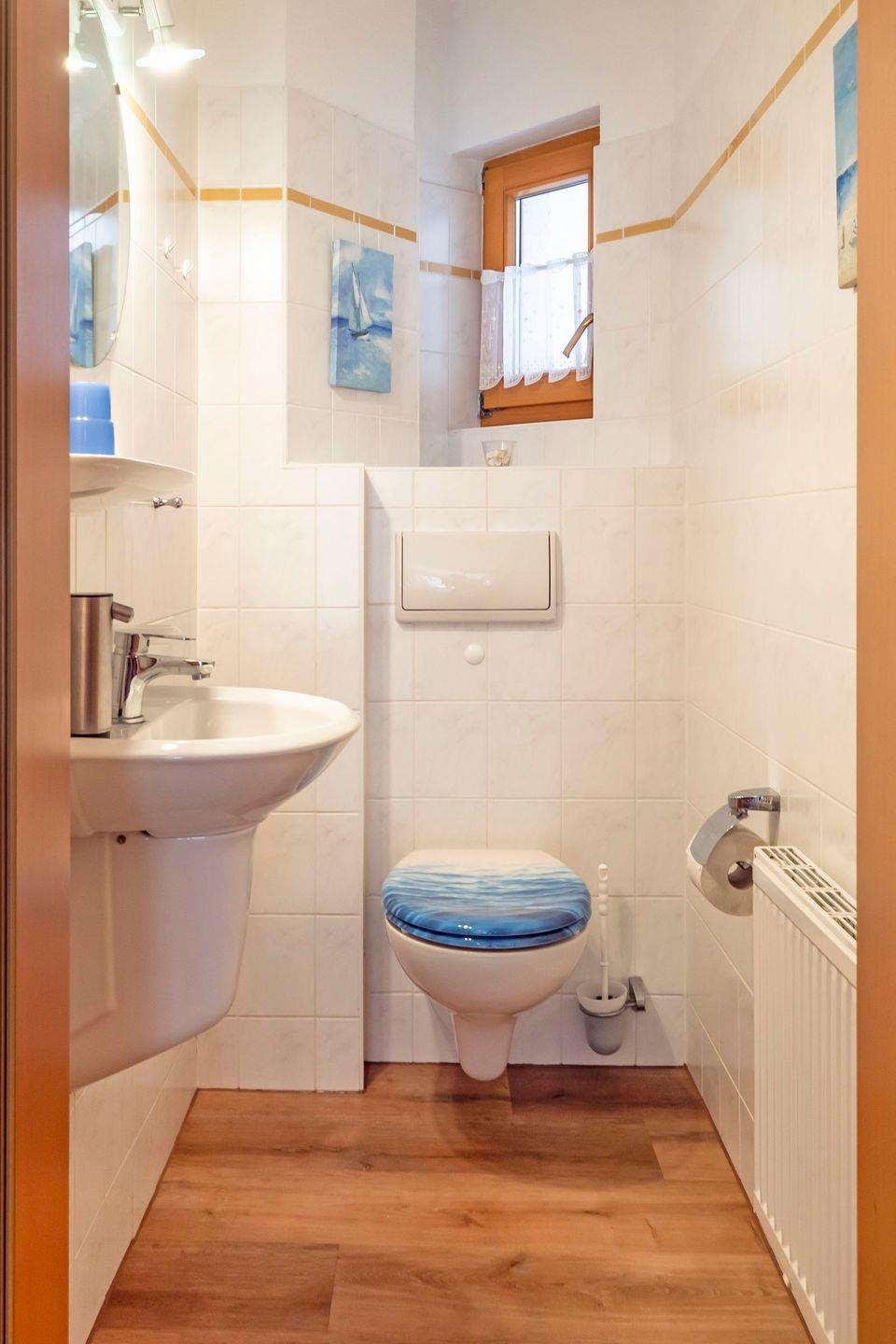 Ein Gäste-WC und ein abgetrennter Eingangs-Garderobenbereich befindet sich ebenfalls im EG.
