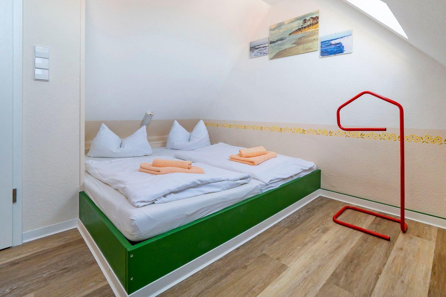 Im Schlafzimmer befindet sich ein Doppelbett (2 Matratzen je 90 x 200)