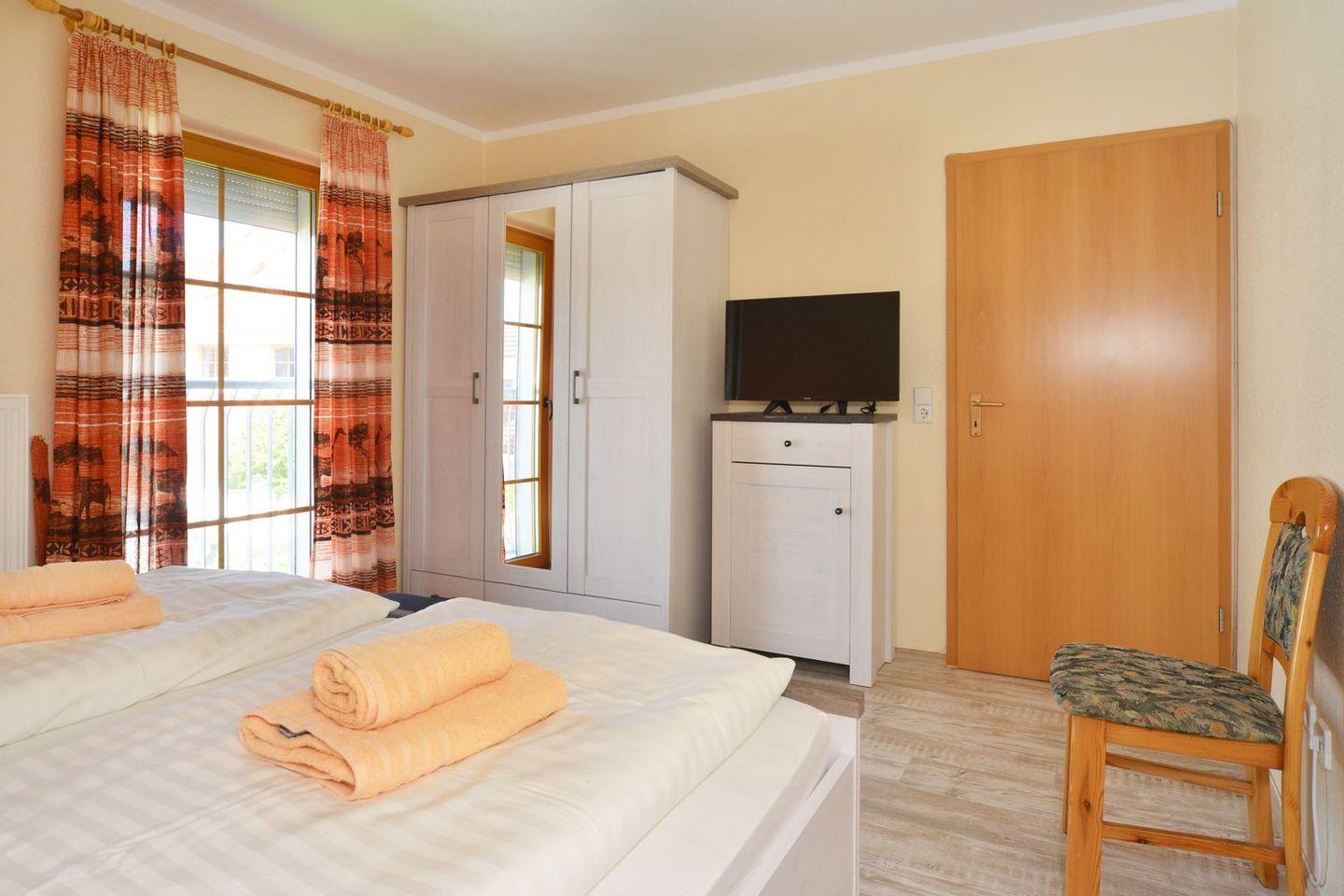 In einem Schlafzimmer befindet sich ein Doppelbett (2 Matratzen je 90 x 200), das zweite Schlafzimmer ist mit 2 Einzelbetten ausgestattet.