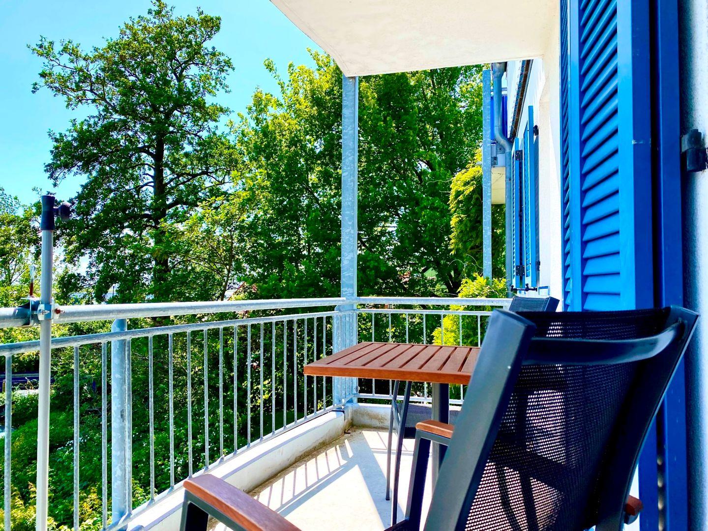 Die Zweizimmerwohnung ist aufgeteilt in den Wohn-Essbereich mit Südbalkon (von hier haben Sie einen schönen Blick auf das Boddengewässer und den Hafen), eine separate Küche, Bad mit Badewanne und ein Schlafzimmer mit Ehebett. Im Keller befinden sich die Münzwaschmaschinen.