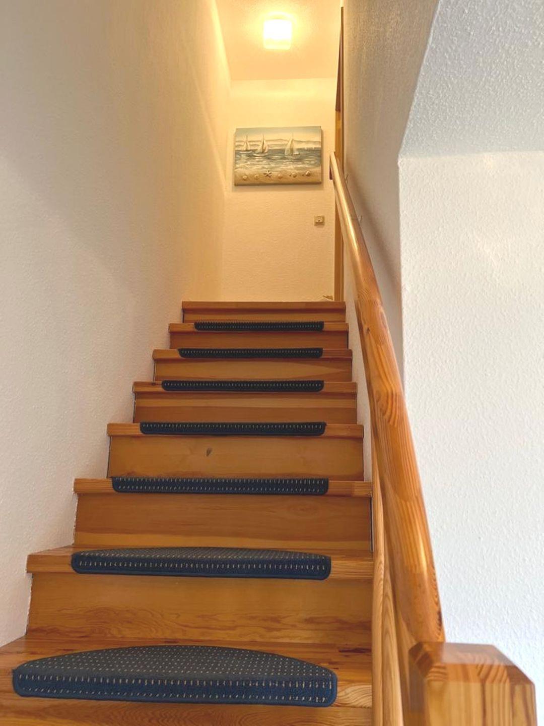 Im Obergeschoss der ca. 65 qm großen Maisonette Wohnung befindet sich ein Bad mit Dusche, Schlafzimmer mit Doppelbett, ein Wohnraum mit Sat-TV, DVD und Stereoanlage. Eine vollständig ausgestattete Küchenzeile mit Backofen, Spülmaschine, Gefrierkombination und Mikrowelle laden zum entspannten Kochen ein.