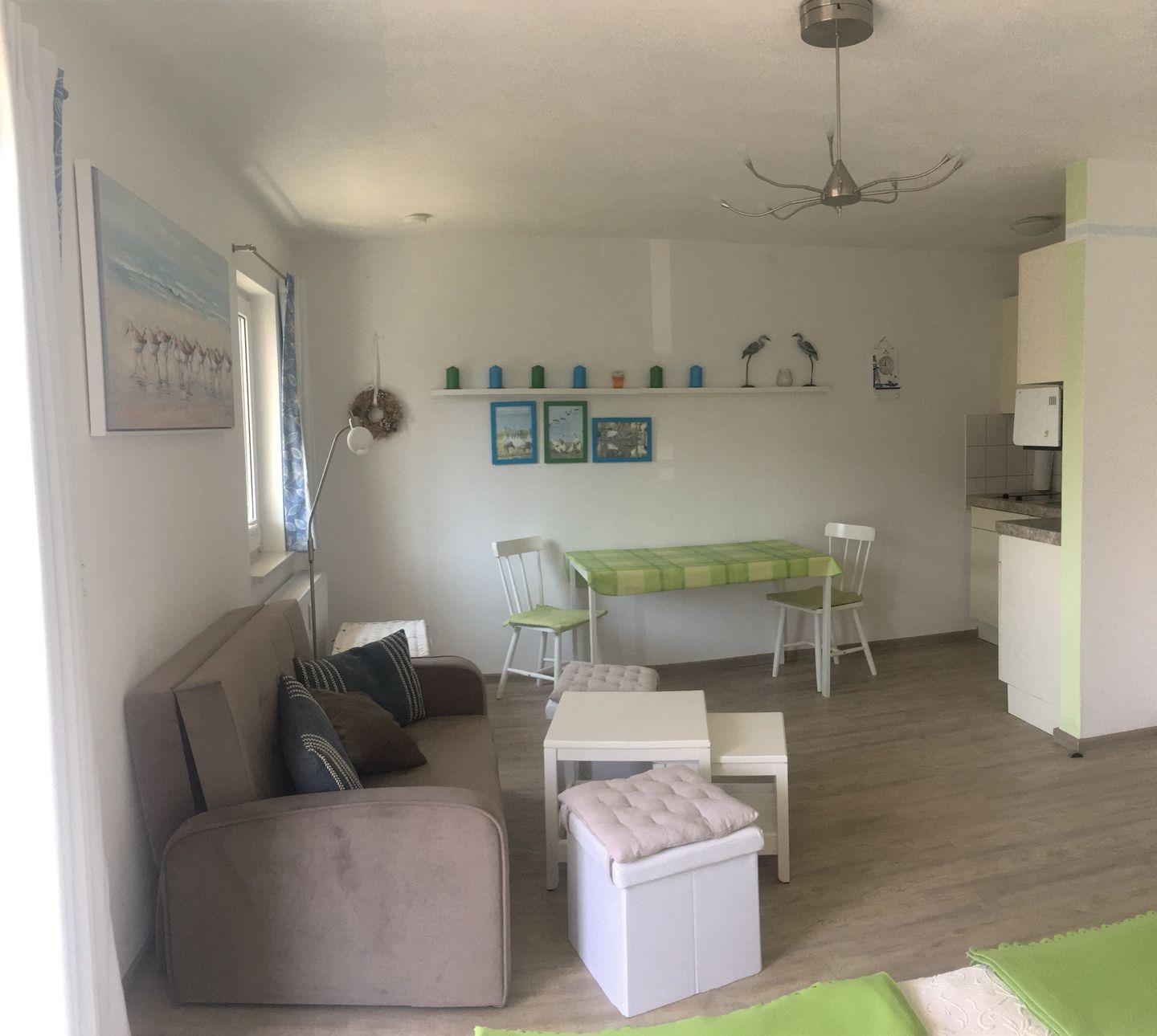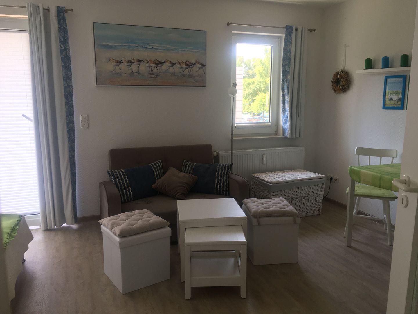 Schönes Studio, 1. OG, 2 Personen mit Süd-Balkon, PKW-Stellplatz, Küchen-Pantry, Bad mit Dusche, WLAN, Zentrum, ruhig gelegen, Strandnähe, Hund erlaubt.