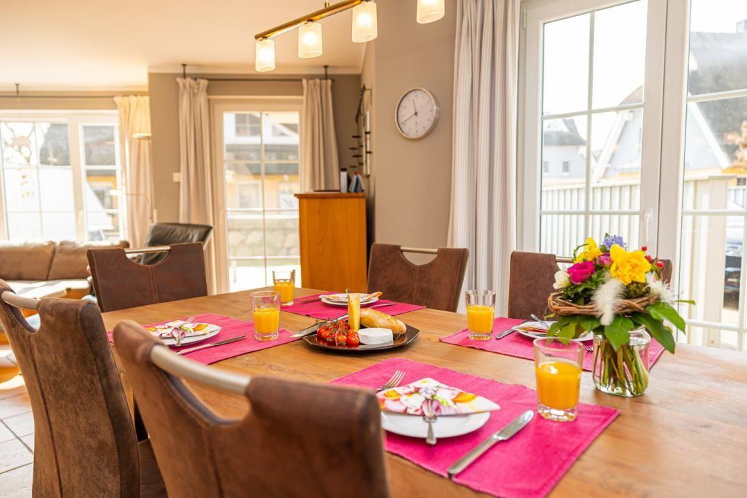Moderne und komfortable Reet-Doppelhaushälfte für 4 Pers. mit Kamin, 2 Schlafzimmern, 2 Bädern, Sauna, W-LAN und 2 PKW-Stellplätzen im Zingster Stil auf 250 qm Grundstücksfläche.