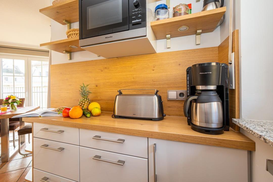 Die Ausstattung von „Mine Heimat Een“ lässt keine Wünsche offen. Die offene Wohnküche ist bestens ausgestattet mit modernsten Geräten, darunter ein Herd, Kühlschrank, Geschirrspüler, Backofen, Mikrowelle und eine Kaffeemaschine. Hier können Sie Ihre Lieblingsgerichte zubereiten und gemütliche Abende mit Ihren Liebsten verbringen. Der angrenzende Wohnbereich ist mit einem Kamin ausgestattet, der an kühleren Abenden für eine behagliche Atmosphäre sorgt. Ein TV und ein DVD-Spieler stehen zur Verfügung, damit Sie auch im Urlaub nicht auf Ihre bevorzugte Unterhaltung verzichten müssen.