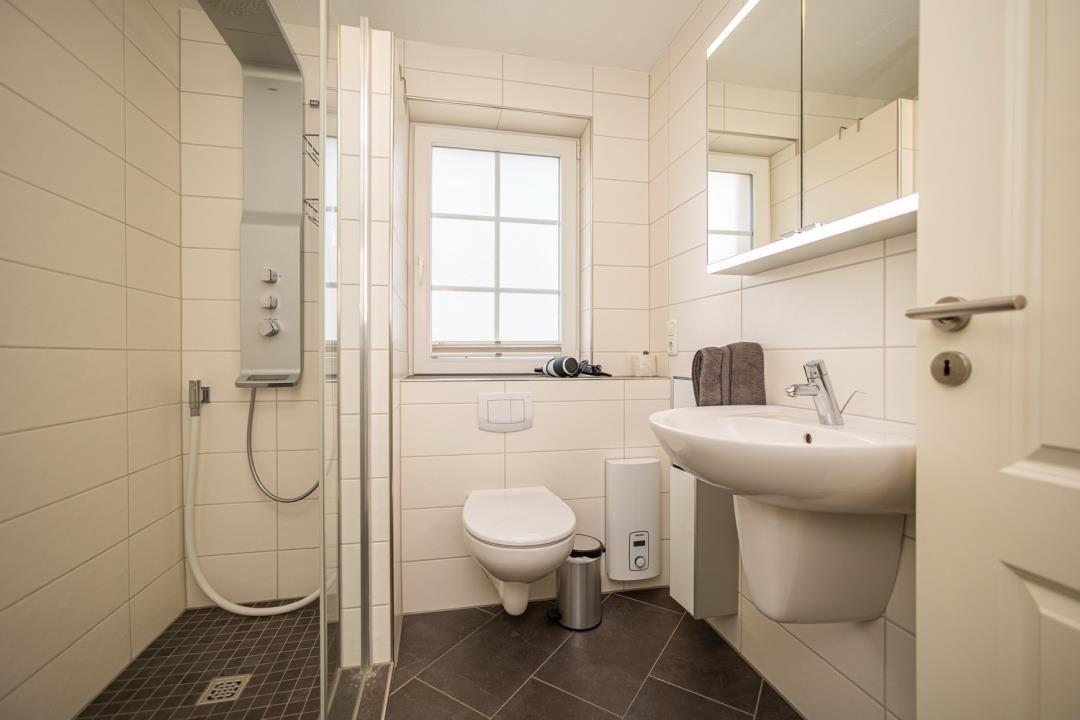 Zusätzlich zu den zwei Schlafzimmern bietet das Ferienhaus zwei Badezimmer, darunter ein bodengleiches Duschbad und ein Gäste-WC, die für den nötigen Komfort während Ihres Aufenthalts sorgen. Das Haus ist allergikergeeignet und Nichtrauchern vorbehalten, was es zu einem gesunden Aufenthaltsort macht. Zudem sind die Fußbodenheizung sowie die Waschmaschine praktische Features, die Ihren Aufenthalt noch angenehmer gestalten.