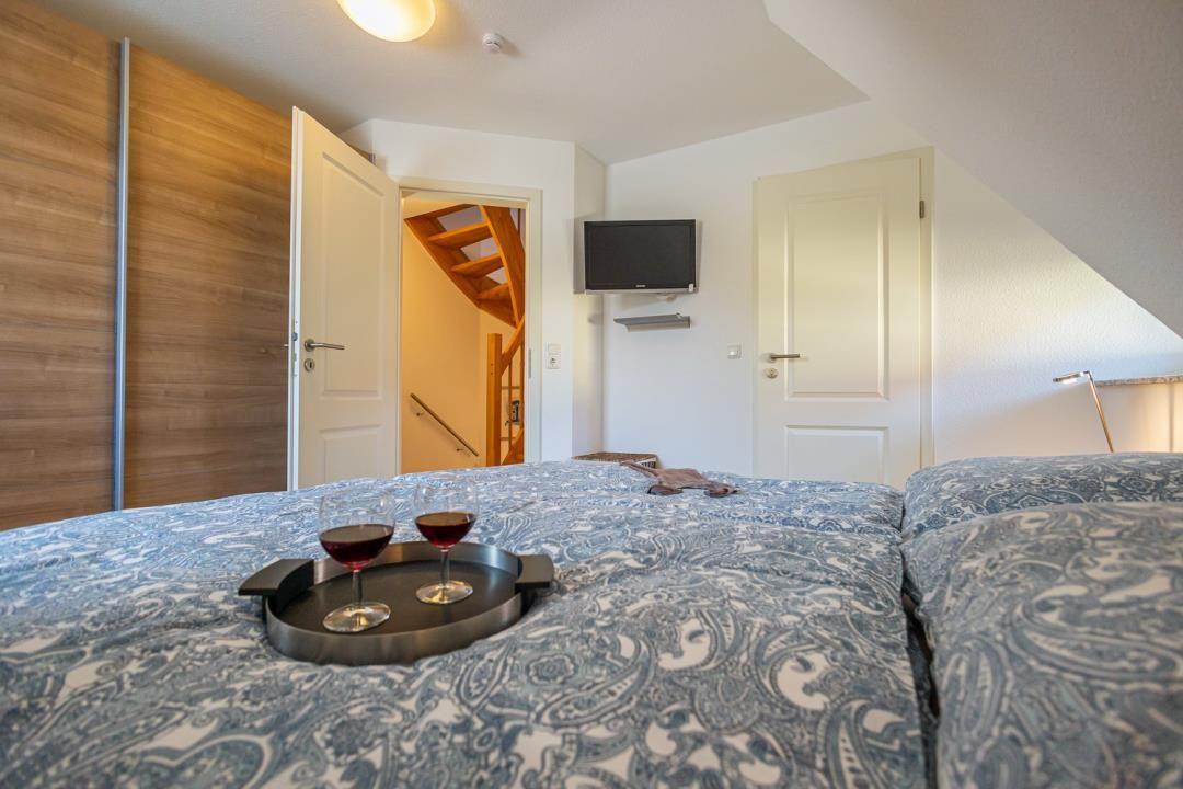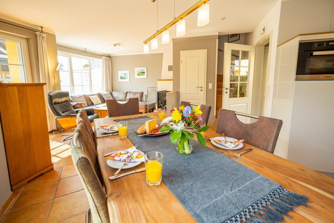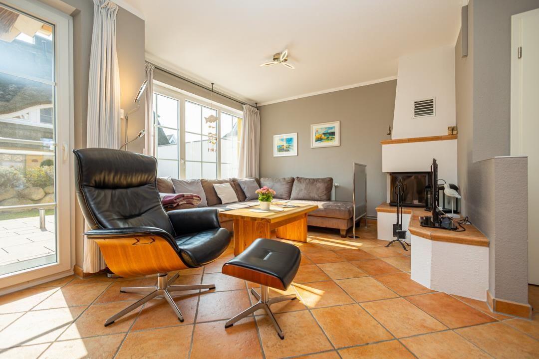 Gut ausgestattete, moderne reetgedeckte Doppelhaushälfte für 4 Pers. mit Kamin, Sauna, 2 Schlafzimmern, 2 Bädern, WLAN und 2 PKW-Stellplätzen auf 250 m² Grundstücksfläche in ruhiger Lage