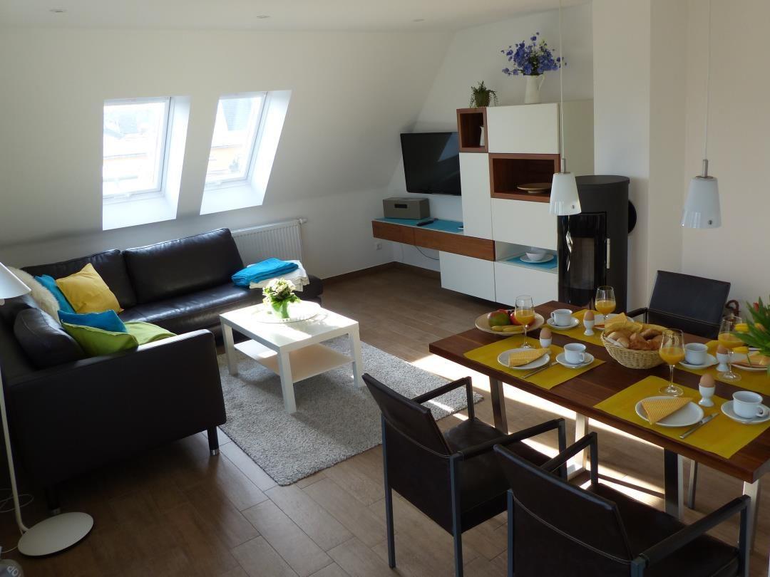Exquisite Ferienwohnung für 4 Pers. mit Kamin, Balkon, WLAN u. 2 PKW-Stellplätzen in TOP-Lage.