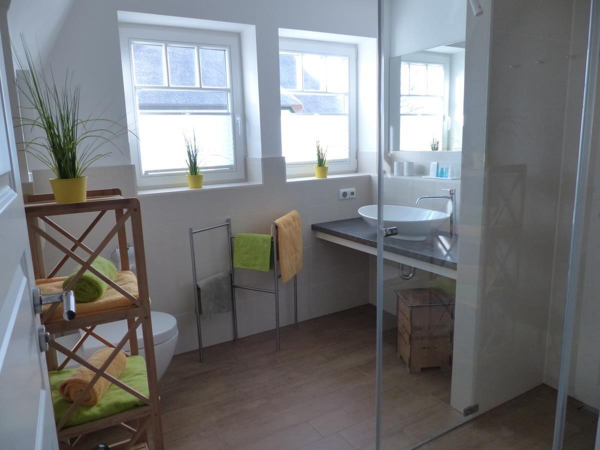 Das Haus ist mit 2 Bädern mit ebenerdiger Dusche ausgestattet. Die im EG befindliche Sauna bietet Wellness-Feeling. Durch den PVC-freien Laminatfußboden ist das Haus für Allergiker geeignet. Zum Haus gehört ein Gartenhaus für Fahrräder und hauseigenem Bollerwagen. Ein Kinderreisebett (aus hygienischen Gründen ohne Matratze und Bettzeug) und ein Kinderhochstuhl stehen bei Bedarf kostenlos bereit.
