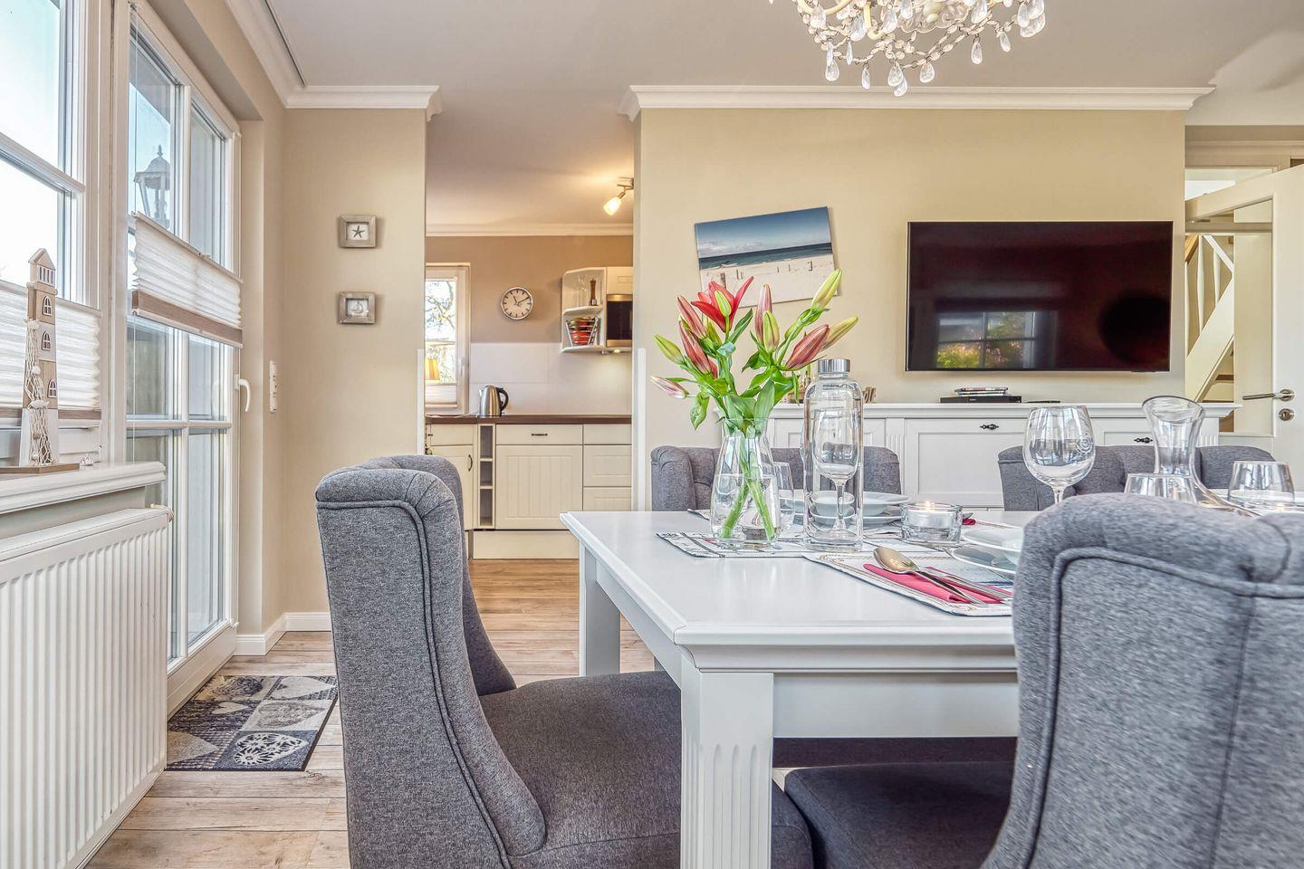 Verbringen Sie einen unvergesslichen und erholsamen Urlaub auf höchstem Niveau in unserer Reet-Doppelhaushälfte. Das 110 qm große Haus ist sehr hochwertig und mit viel Liebe zum Detail eingerichtet. Es bietet mit 3 Schlafzimmern und 2 Bädern Platz bis zu 6 Personen – eine ideale Unterkunft für größere Familien, gemeinsam reisende Paare mit Kindern oder natürlich auch für die kleinere Familie die mehr Platz möchte.