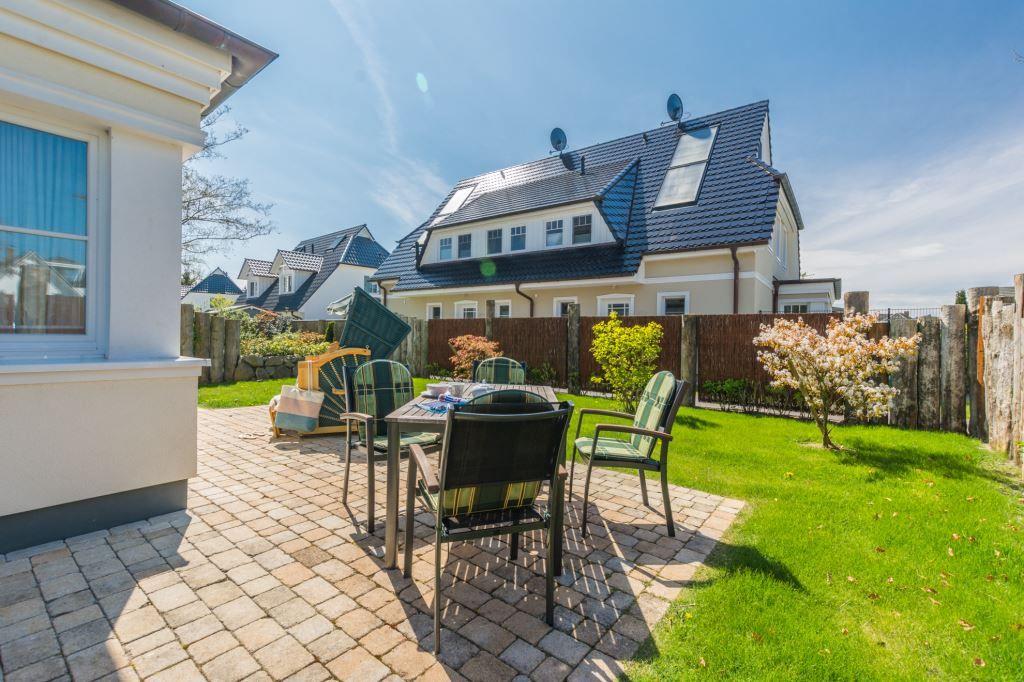 Unsere vom Wohn-/Esszimmer aus begehbare, große Darßveranda wartet auf Sie mit einem Gartentisch und 6 Stühlen sowie einem Strandkorb. Ihre Kinder können im hauseigenen großen Garten mit Rasen spielen bis das Essen, in der tollen Küche zubereitet, auf dem Tisch steht. Das Frühstück gibt es auf der eingangsseitigen Morgenterrasse.