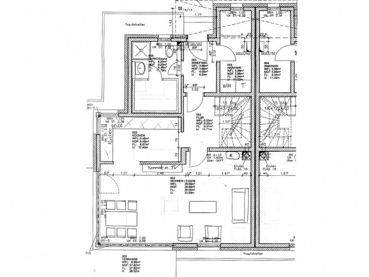 Im Esszimmer finden Sie am großzügigen Esstisch ausreichend Platz für ein leckeres Abendessen, dass Sie in der voll ausgestatteten Einbauküche zubereitet haben. Diese ist ausgestattet mit einem Cerankochfeld, Backofen, Mikrowelle, Kühlschrank mit Gefrierfach, Geschirrspüler, Kaffeemaschine. Im 1. OG befinden sich 2 Schlafzimmer mit Doppelbetten (Schlafzimmer 1 Bettgröße 1,80*2,00m und Schlafzimmer 2 für die Großen Bettgröße 1,80*2,10m). Jedes Schlafzimmer besitzt einen eigenen TV und eine kleine Stereoanlage. Ein weiteres Schlafzimmer ist im DG, hier finden Sie 2 Einzelbetten (Größe je 0,90*2,00m) und ebenfalls einen TV vor. Fliegenschutzgitter sind an jeweils einem Schlafzimmerfenster sowie an den Badezimmerfenstern und der Terassentür angebracht.