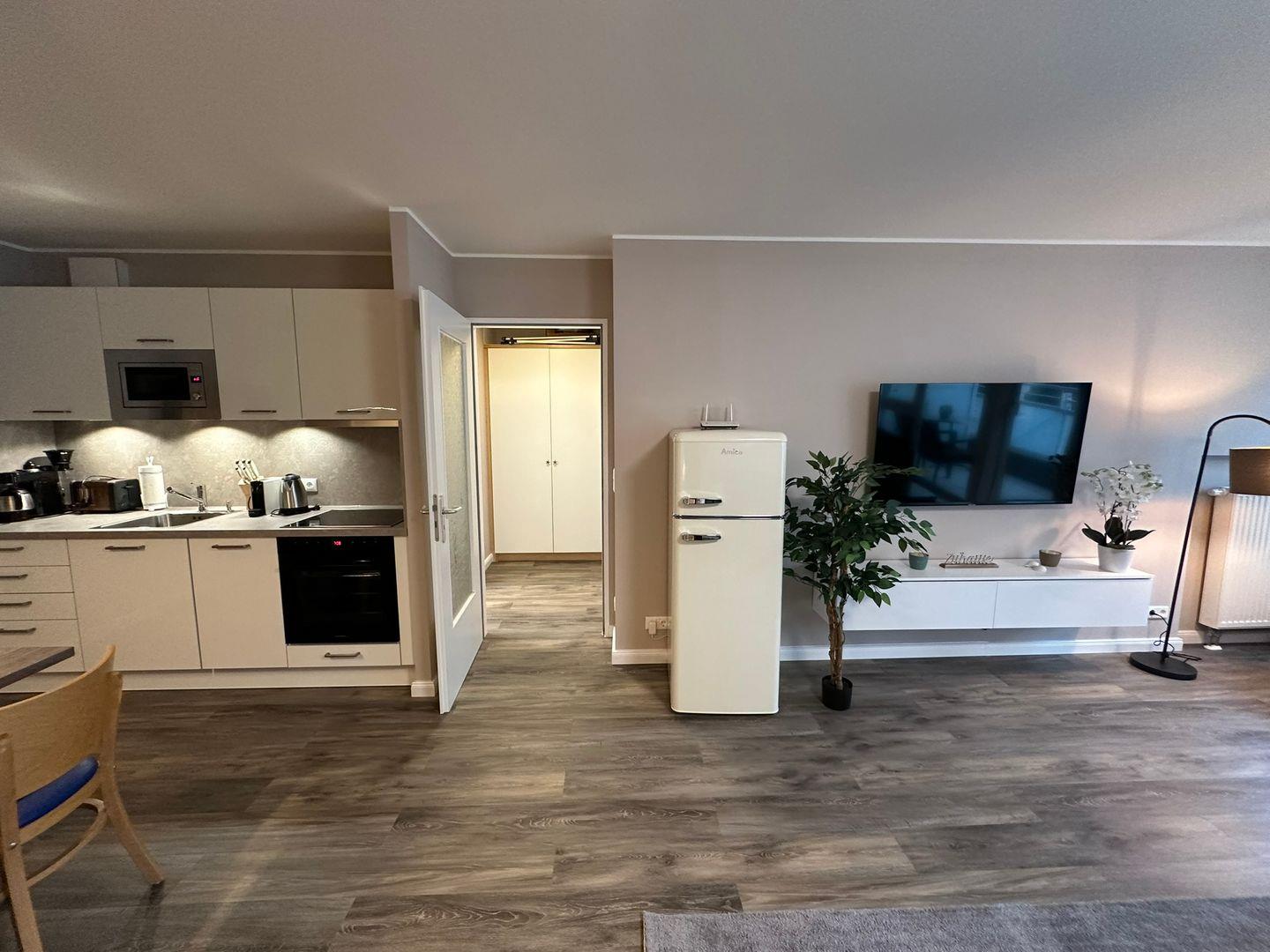 Freuen Sie sich ab Frühjahr 2024 auf einen Urlaub in einer modernen und schicken Ferienwohnung mit einer neuen, voll ausgestatteten Küchenzeile, renoviertem Bad, einem Elektrokamin, und 2 Fernsehern: Wohnzimmer 55“; Schlafzimmer 43“.