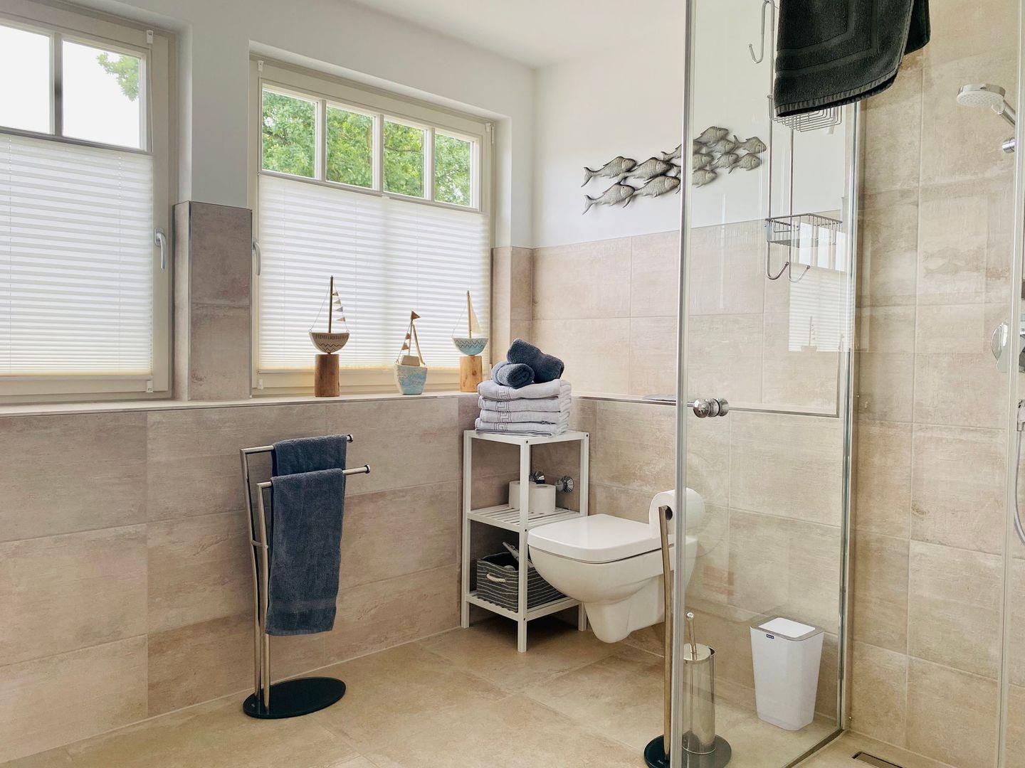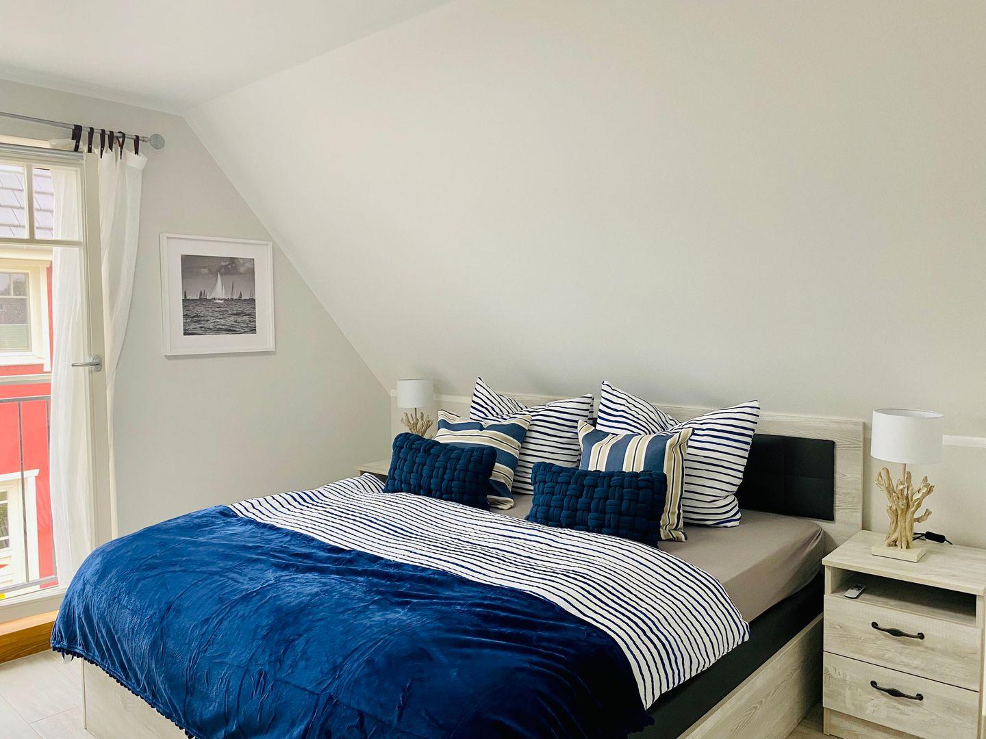 Verdunklungsmöglichkeiten in den Schlafzimmern sind vorhanden.