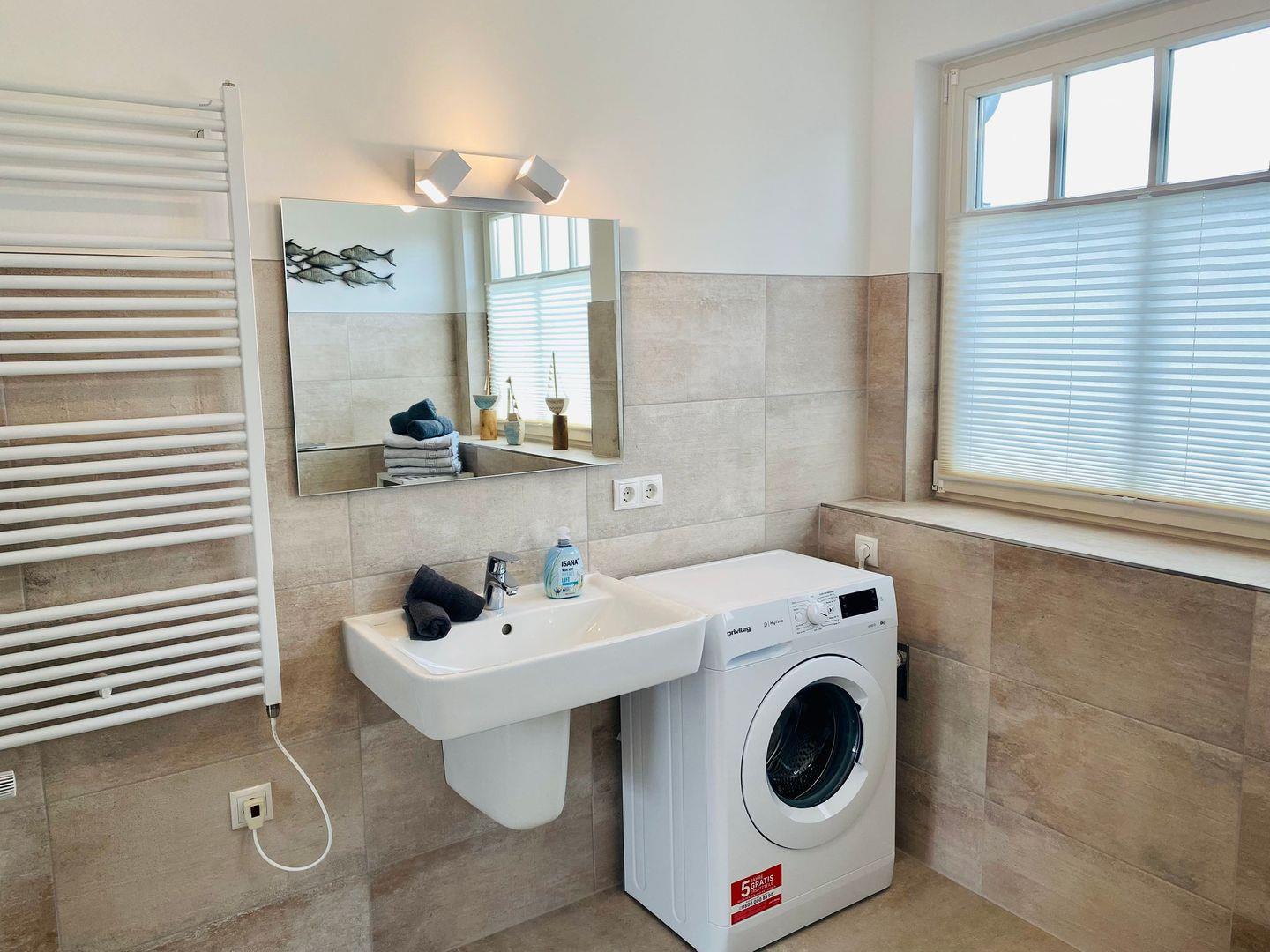 Waschmaschine, Hochstuhl und Kinderreisebett befinden sich vor Ort.