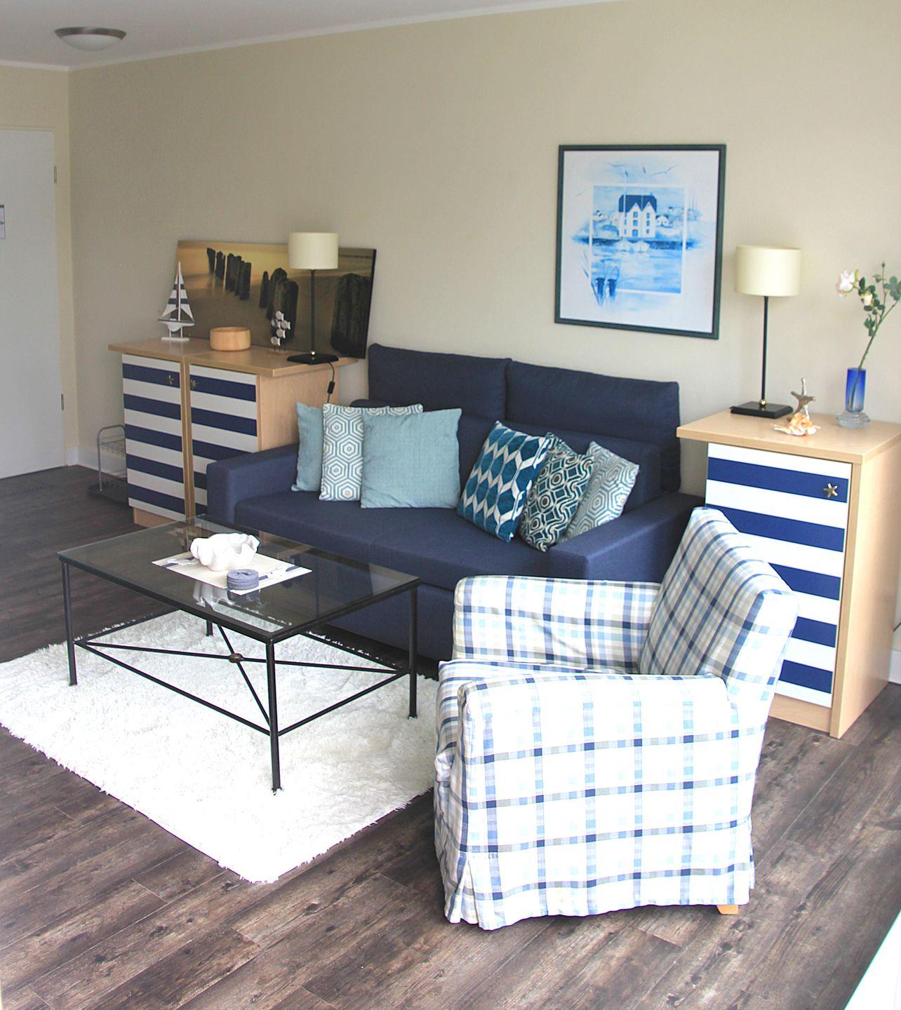 Das 2-Raum-Apartment (ca. ·51 m2) umfasst ein Wohnzimmer mit offener Küche, Schlafzimmer und ein Bad mit Dusche, Toilette, Schminkspiegel, Badhocker und Fön. Das großzügige Wohnzimmer ist modern und gemütlich geschnitten.