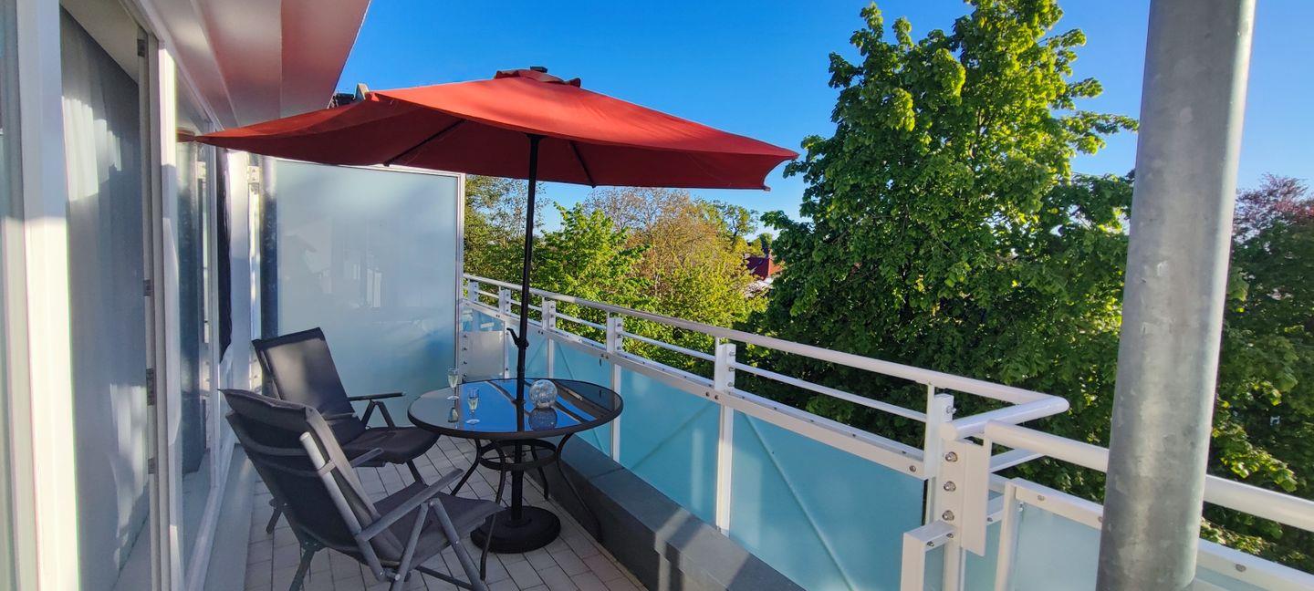 Wer sich ungestört sonnen oder die Abendsonne an der frischen Ostseeluft mit einem Gläschen Wein genießen möchte, dem steht dafür der Balkon mit gemütlichen Terrassenmöbeln und einem Strandkorb zur Verfügung.