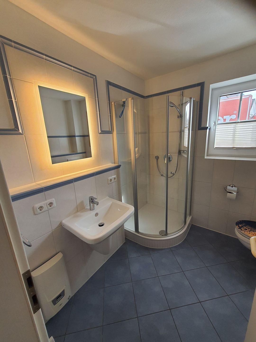 Das Badezimmer ist mit einer Dusche/WC ausgestattet. Zudem steht Ihnen eine Waschmaschine zur Verfügung, die Sie bequem in der Wohnung nutzen können.