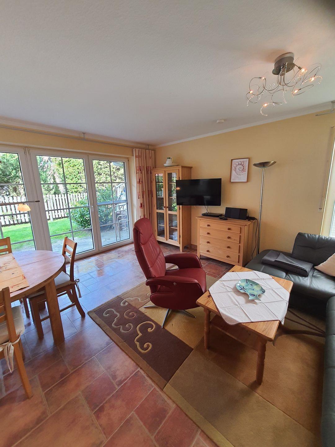 Gut 500 m vom bezaubernden Ostseestrand entfernt, erwartet Sie unsere familienfreundlich eingerichtete 3 Zimmer Wohnung. Die Wohnung befindet sich im EG. Herzstück der Wohnung ist der große offene Wohn-, Ess- und Küchenbereich. Die Küche ist voll ausgestattet inklusive Geschirrspüler. Ein Schlafzimmer mit Ehebett (Außenrollo), ein Schlafzimmer mit Einzelbett (Außenrollo). Bad mit Dusche/WC. Auf der Süd-Westterasse können Sie die untergehende Sonne genießen. Kinder erst ab 7 Jahren erlaubt.
