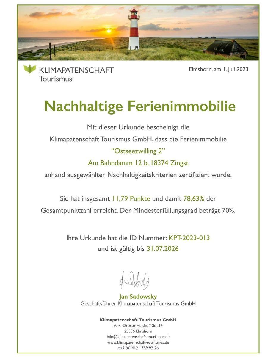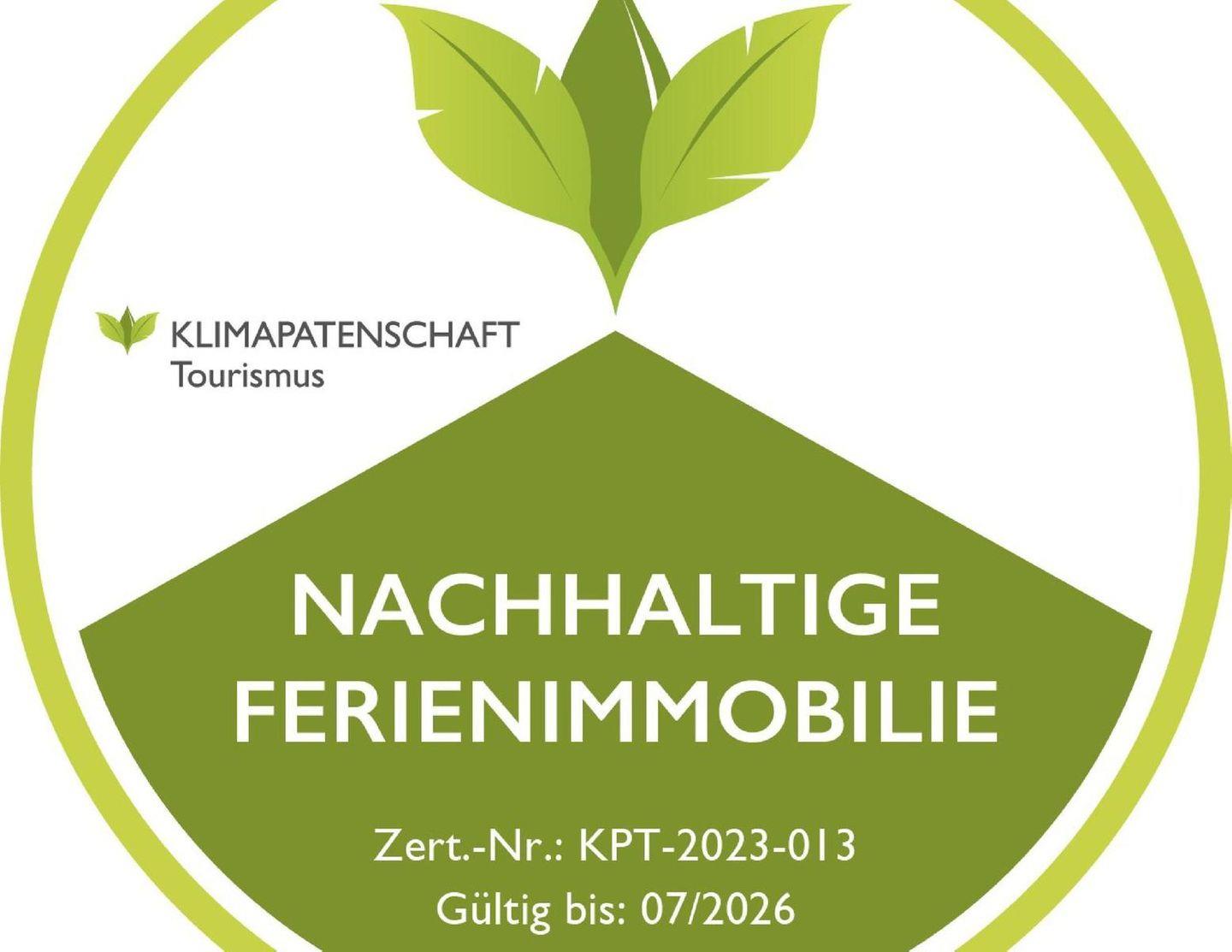 Im Juli 2023 wurde die Unterkunft von der "Klimapatenschaft Tourismus" als nachhaltig zertifiziert.