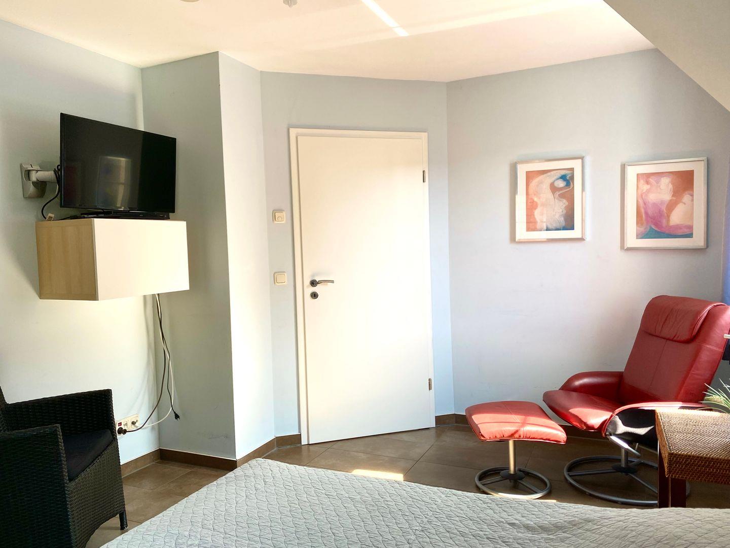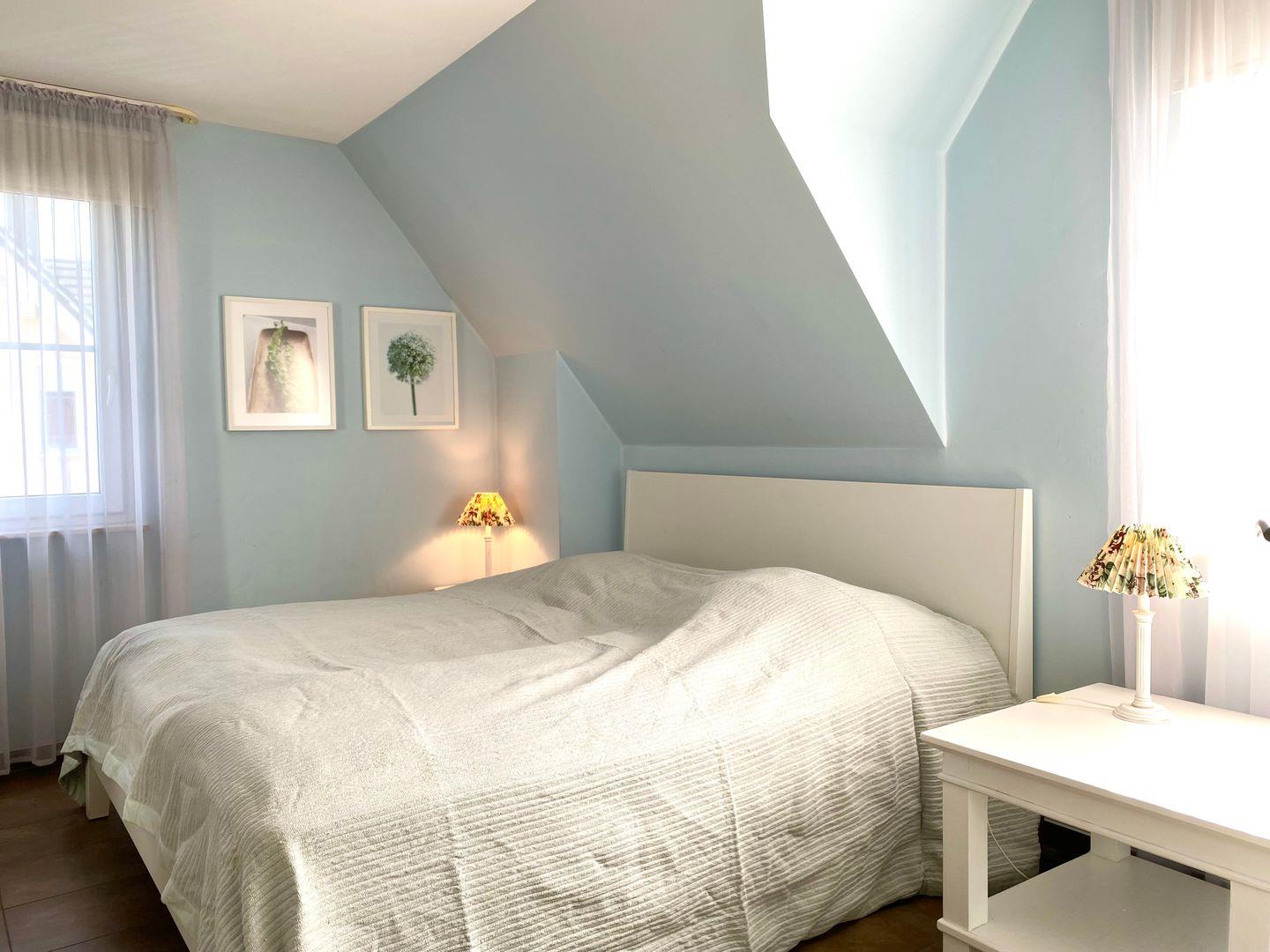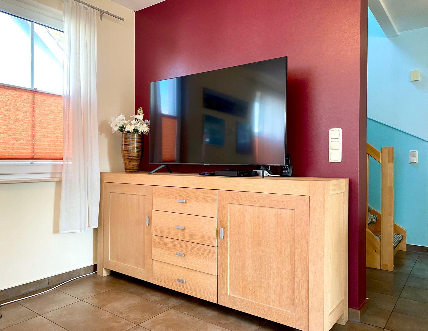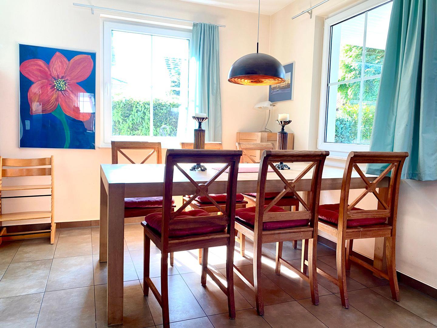 Das individuell und geschmackvoll eingerichtete, frei stehende Einfamilien-Komforthaus bietet auf ca. 110 qm Wohnfläche großzügigen Platz für 6 Personen. Es ist ausgestattet mit einem Wohnraum, geräumigen Essplatz und einer komplett eingerichteten Küche, wo es an nichts fehlt. Drei individuell gestaltete Schlafräume, jeweils mit Doppelbett. Bad mit großer Dusche, Bidet, WC und Doppelwaschbecken. Das Gästebad hat zusätzlich eine weitere Dusche. 6 sitziger Essplatz plus Kinderstuhl (Tripp Trapp). Ein vorhandenes Kinderbett kann aufgestellt werden. Im Wohnzimmer befindet sich ein Kaminofen (mit Holz zu befeuern) für kuschelige Abende. Flachbildschirm Sat-TV und DVD Player, sowie eine Stereo Musikanlage sind vorhanden. Ein Schlafzimmer ist ebenfalls mit Sat-TV und DVD ausgestattet. Kostenloses W-LAN. Die Südwestterrasse ist überdacht und mit Gartenmöbeln, sowie einer Sonnenliege und 2 Sonnenstühlen ausgestattet. Bei Bedarf kann der Holzkohlegrill genutzt werden. 2 Parkplätze sind direkt am Haus und es gibt einen Fahrradständer.