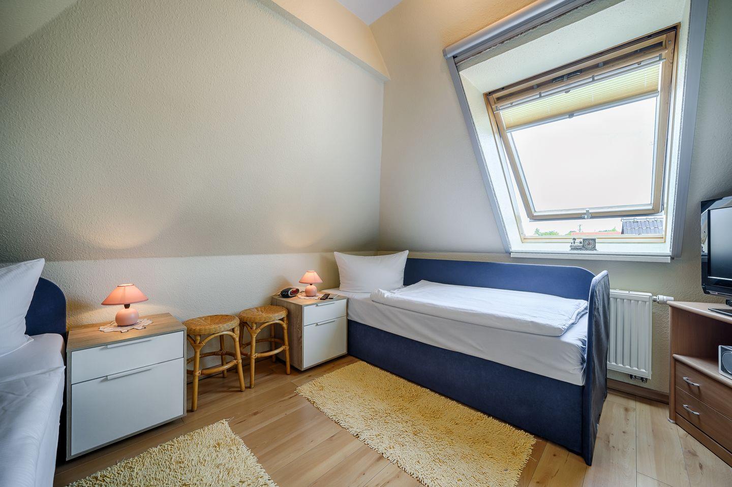 1 Schlafzimmer mit 2 Einzelbetten (0,80x2,00m), TV