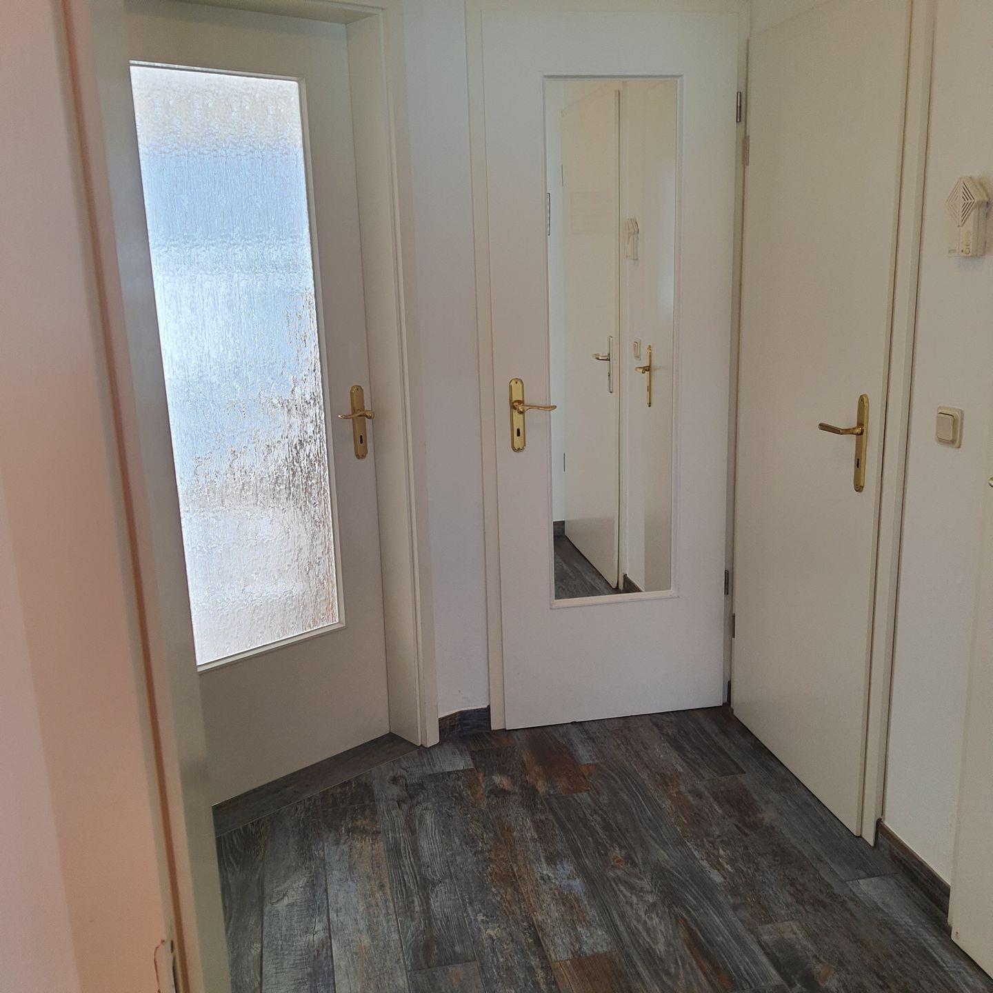 Das Badezimmer ist mit Dusche und WC ausgestattet.