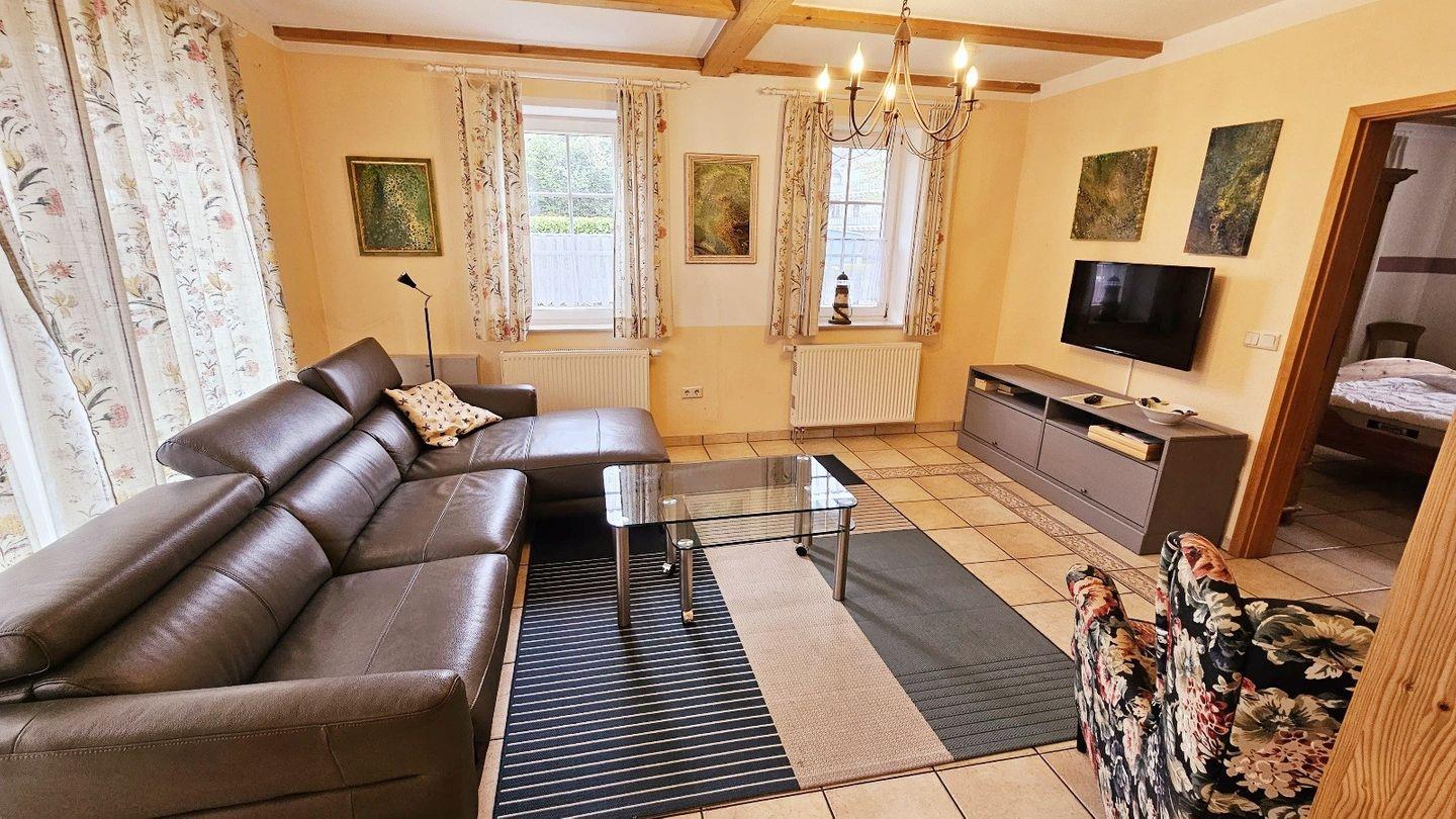 - eine komfortable Essecke mit Eckbank und ein geräumiges Ledersofa