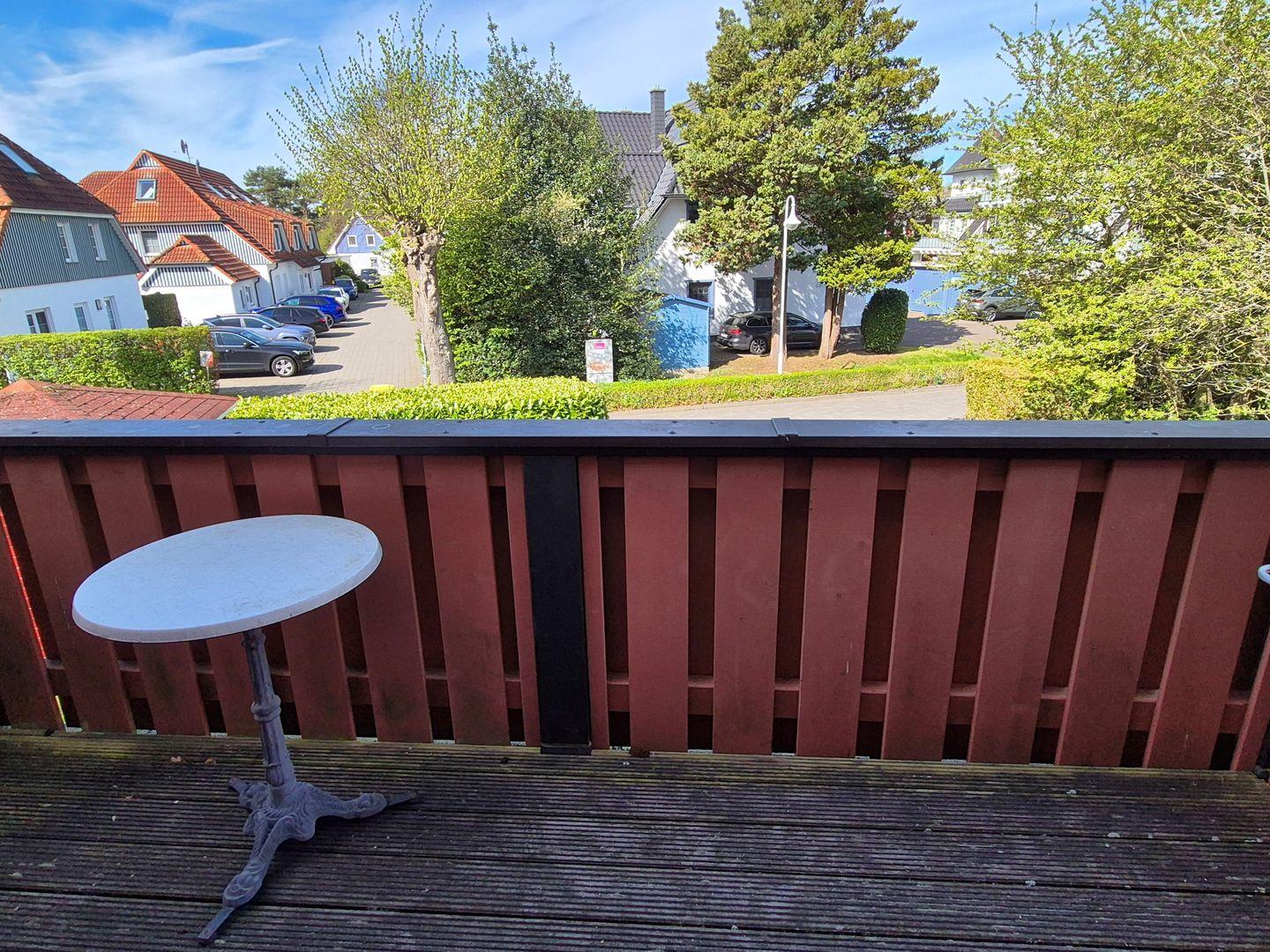 Vom Wohnzimmer aus haben Sie Zugang zum Südwestbalkon, der mit Gartenmöbeln ausgestattet ist und einen herrlichen Ausblick auf die Umgebung bietet. Ideal, um den Tag bei einem Drink ausklingen zu lassen oder die Sonne zu genießen.