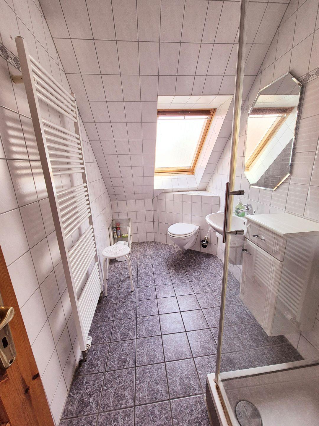 - Tageslichtbad: Mit Dusche und Waschmaschine für zusätzlichen Komfort