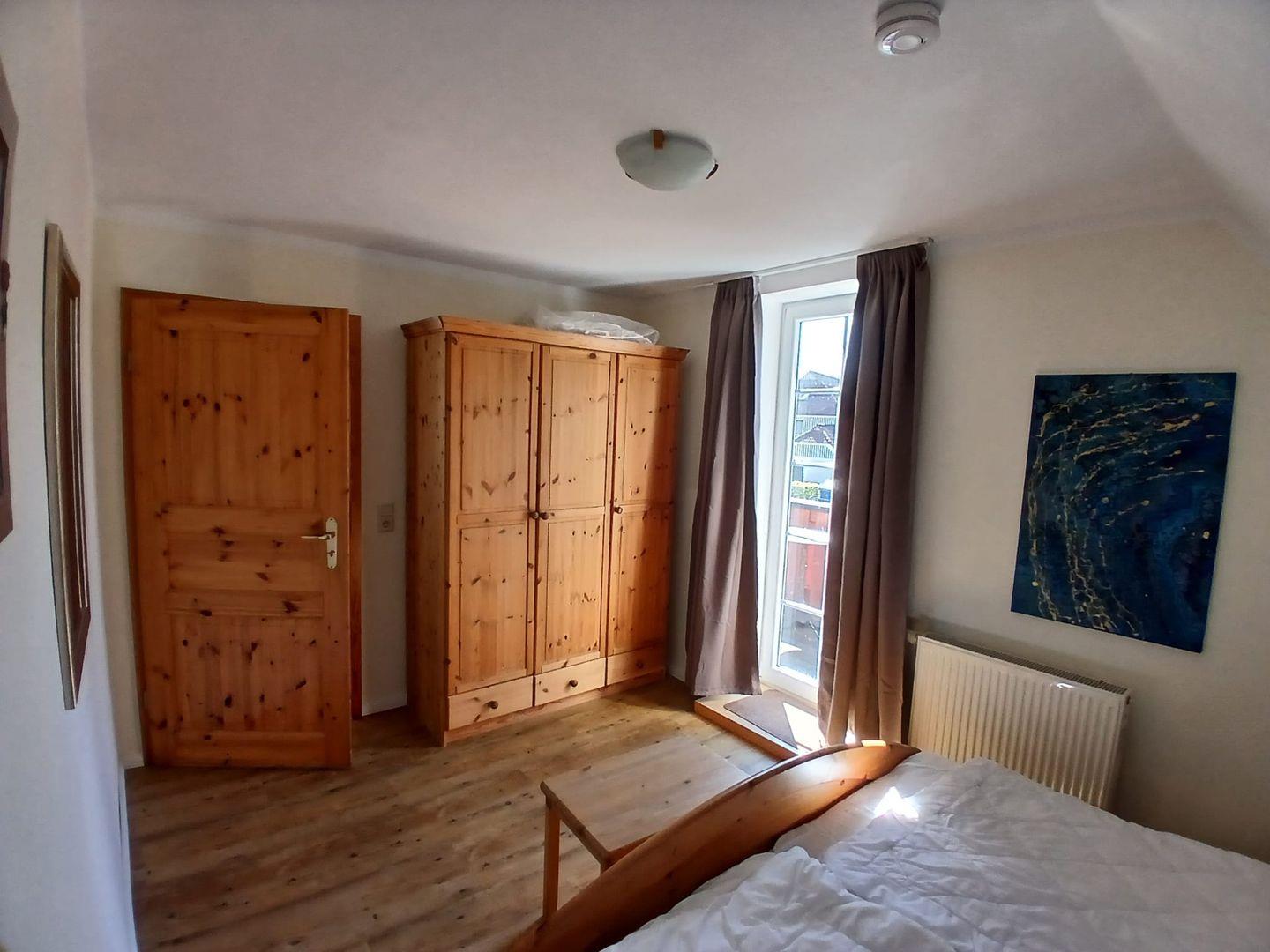 - Großes Schlafzimmer: Doppelbett, großzügiger Kleiderschrank und Platz für ein Kinderbett