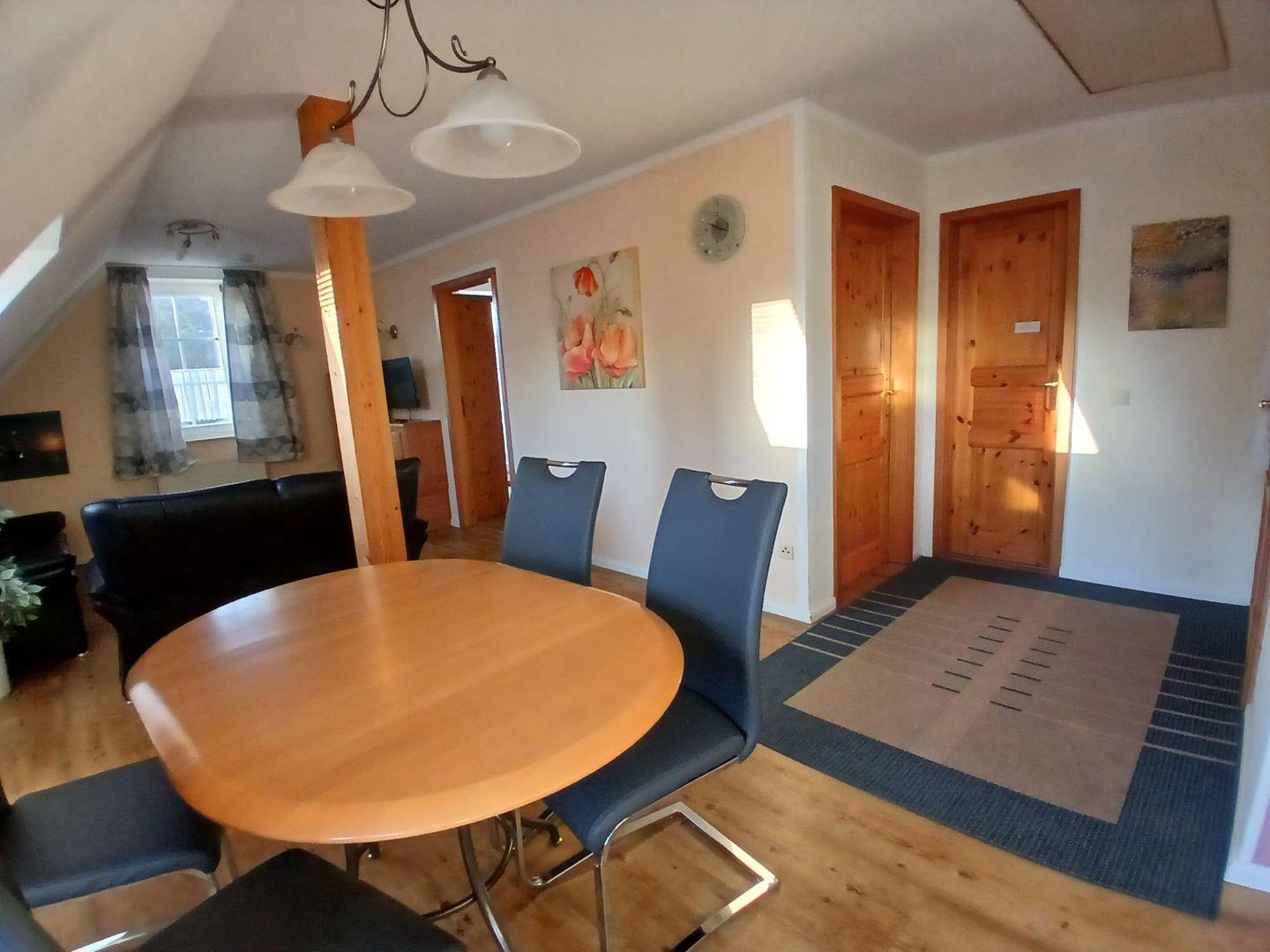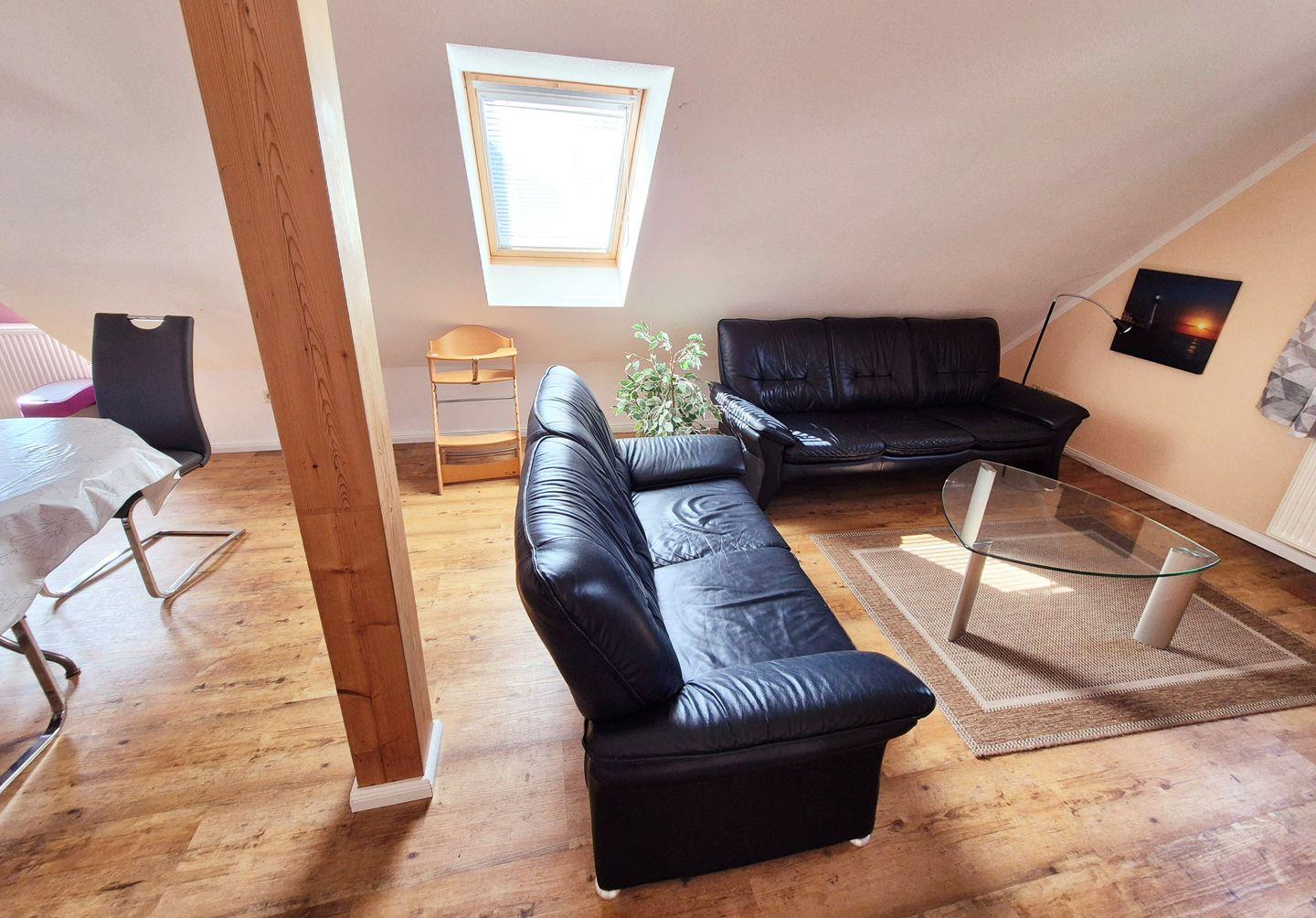 Die Wohnung im Obergeschoss bietet auf ca. 60 qm Platz für bis zu 4 Personen und überzeugt mit einem durchdachten Raumkonzept. Die Ausstattung umfasst: