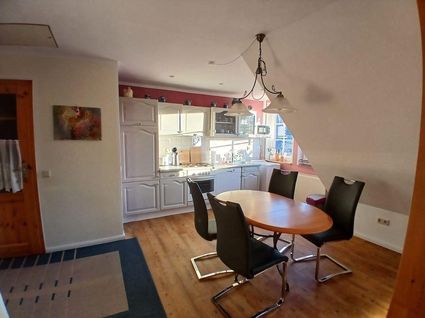 - Der helle Wohnbereich mit offener Küchenzeile bietet alles, was Sie für einen entspannten Aufenthalt brauchen: Kühlschrank, E-Herd, Geschirrspüler, Mikrowelle, Toaster, Kaffeemaschine und Wasserkocher